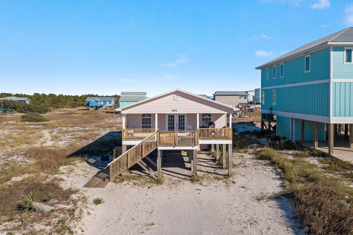 Located in the peaceful Gulf Shores of Alabama, the Lonesome Seagull beach house offers a renovated Gulf view, seamlessly blending modern comforts with coastal charm. Guests can indulge in culinary delights with the fully equipped kitchen or unwind on the covered porch, soaking in the serene surroundings. Situated just a short distance from the beach, this property caters to those seeking a tranquil escape. With a minimum age requirement of 25, the Lonesome Seagull guarantees a mature and relaxed atmosphere for guests. For more information on rates, availability, or to inquire about unknown travel dates, guests can specify the location, number of guests, and contact information to plan their perfect getaway at this idyllic beach house.