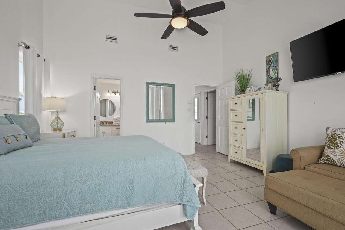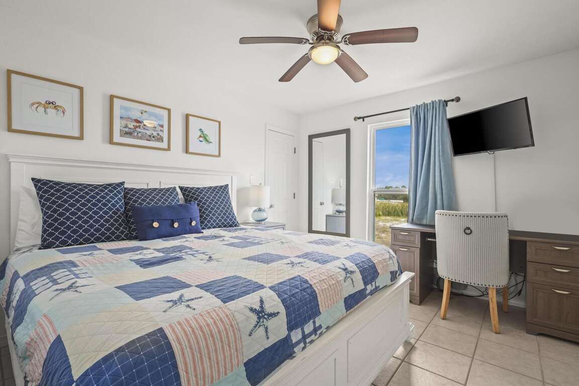 To enhance the guest experience further, the Gulf Shores vacation rental boasts an array of luxurious amenities and features that cater to comfort and relaxation. The property offers spa-like luxury, with a master bedroom featuring a walk-in closet, a spa-like bathroom with a soaker tub and double sink vanity, and a second King bedroom with stunning Gulf views. Additionally, the kids' room provides a cozy space with a Full over Full bunk bed, perfect for the little ones. Each bedroom is equipped with its own TV, ensuring entertainment for all guests. Whether enjoying the unobstructed Gulf views from the open deck or unwinding in the master bedroom, guests are sure to experience a blend of comfort and luxury during their stay.