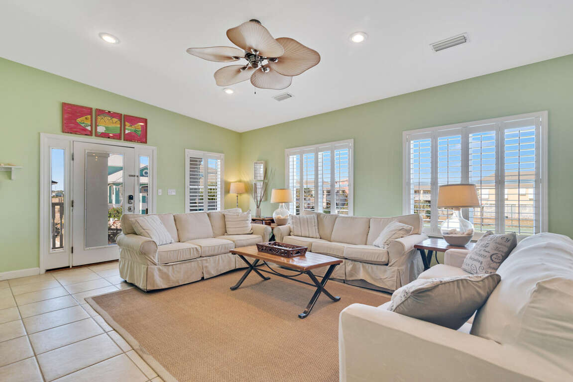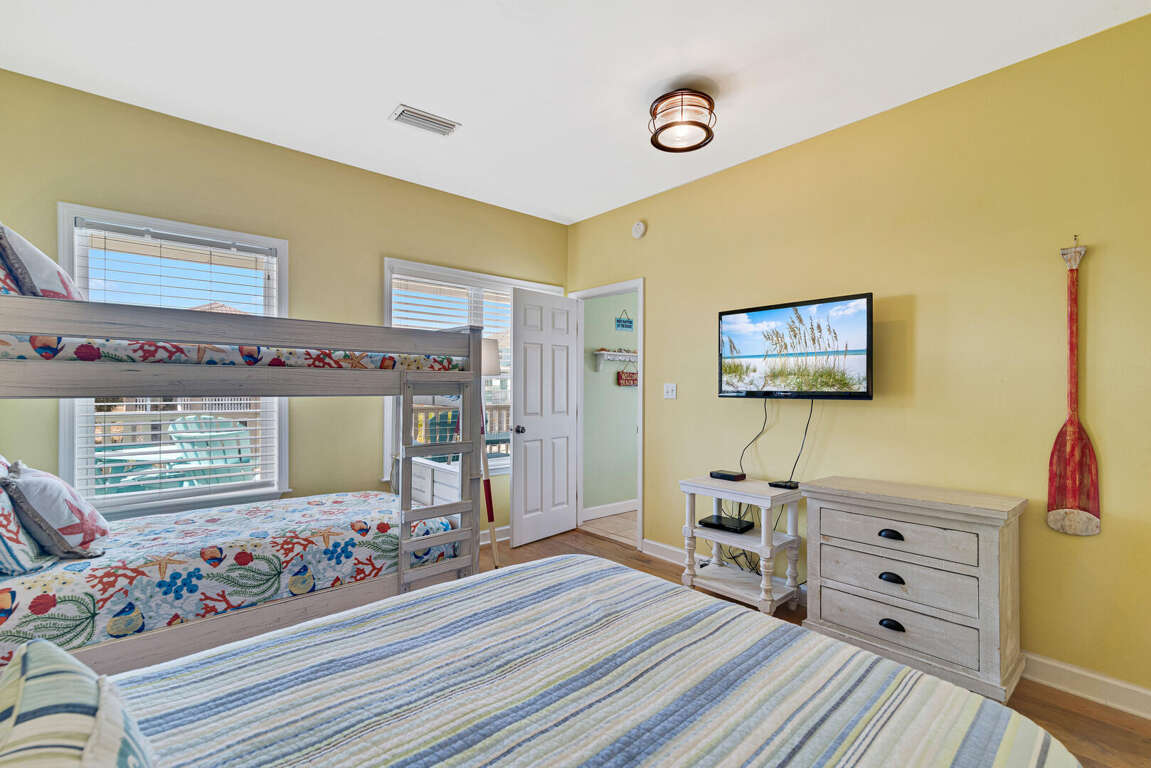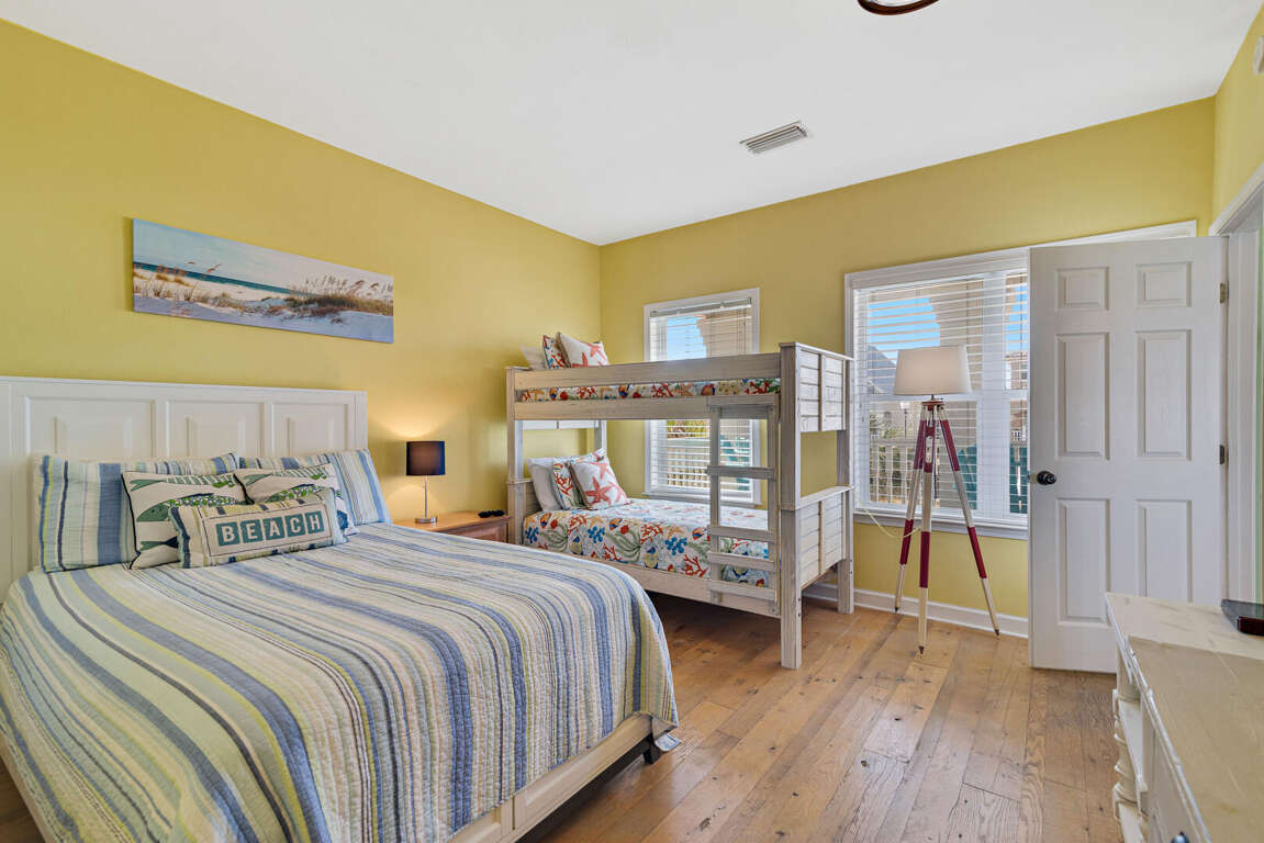 Boasting a vibrant and pet-friendly environment, this 3-bedroom house in Gulf Shores, AL offers a colorful interior, an open-concept living space, and stunning views of the Gulf from its covered front porch. The interior design is lively and welcoming, with tasteful decor that reflects the coastal surroundings. Nearby attractions include the beautiful Gulf Shores Beach, just a short walk away, where guests can enjoy sunbathing and water activities. The house's layout is designed for entertaining, making it an ideal base for exploring the Gulf Coast with family and friends. Whether relaxing on the porch or heading out to explore the area, this house provides a perfect blend of comfort and convenience for a memorable beach escape.