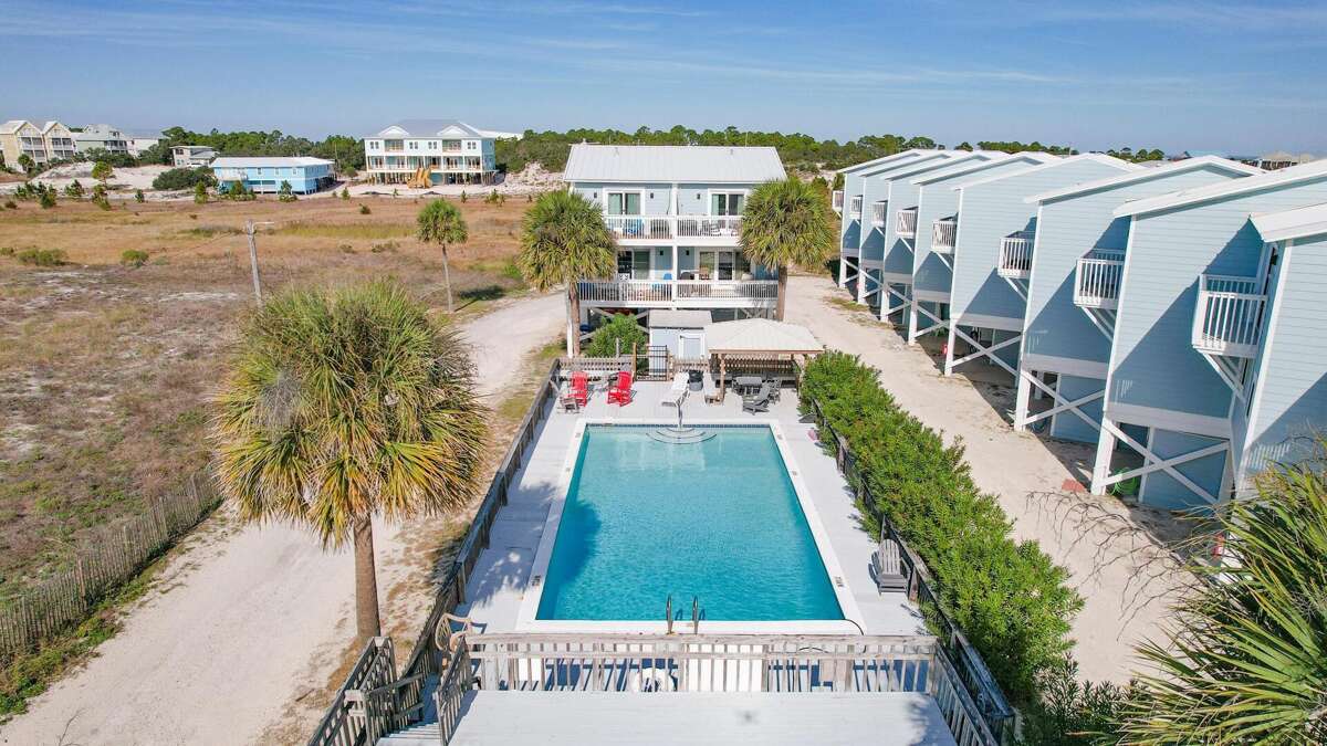 Located within the peaceful Ft. Morgan Townhomes, Luck E Townhouse, Unit E13, offers an elegant and comfortable retreat with three bedrooms and two full bathrooms, providing a total living space of 1250 sqft. This beachfront charm exudes luxury accommodations, perfect for those seeking a serene and upscale getaway. Each bedroom boasts a private balcony, allowing guests to enjoy the stunning Gulf views. The interior features coastal decor and well-appointed furnishings, creating a relaxing atmosphere. Stainless steel appliances grace the kitchen, while central AC and a washer/dryer add convenience. With easy beach access and a pool with a large sun deck, Luck E Townhouse combines relaxation with luxury, making it an ideal choice for a memorable Gulf Shores vacation.