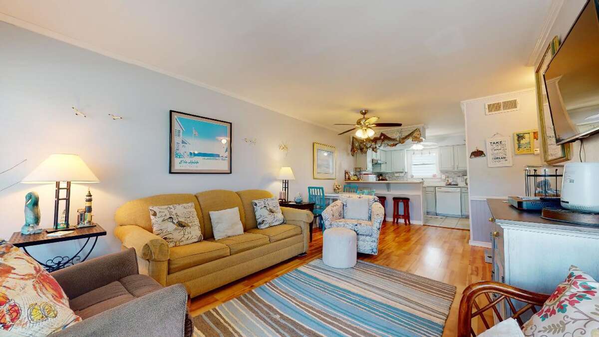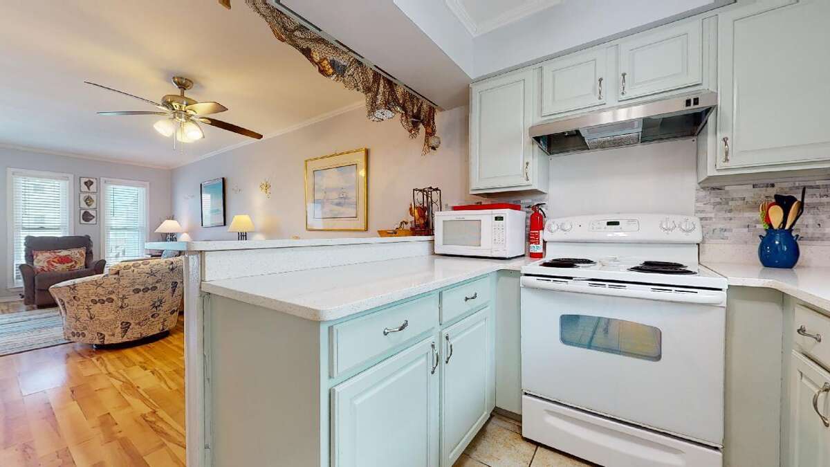 The Sun-Dance Condo in Gulf Shores, AL offers a sophisticated interior featuring central air conditioning, a well-equipped kitchen with fishing nets, and a dining space for six guests. The kitchen is designed to meet all your culinary needs, whether you're preparing a quick snack or a gourmet meal. Additionally, the condo includes a private washer/dryer, ensuring convenience during your stay. Relax in the comfortable living room equipped with a smart TV for entertainment. Both bedrooms are also equipped with smart TVs, providing added comfort and entertainment options. These interior features make Sun-Dance Condo a perfect choice for those seeking a relaxing and enjoyable vacation experience with all the comforts of home.