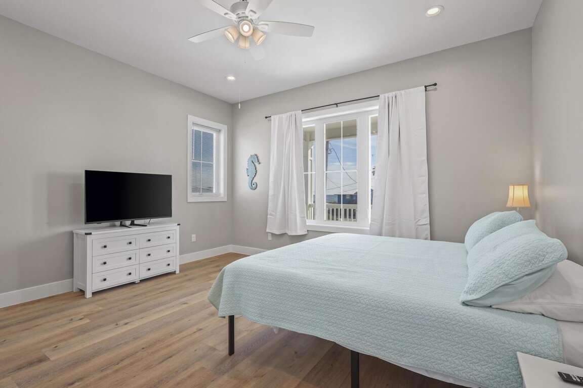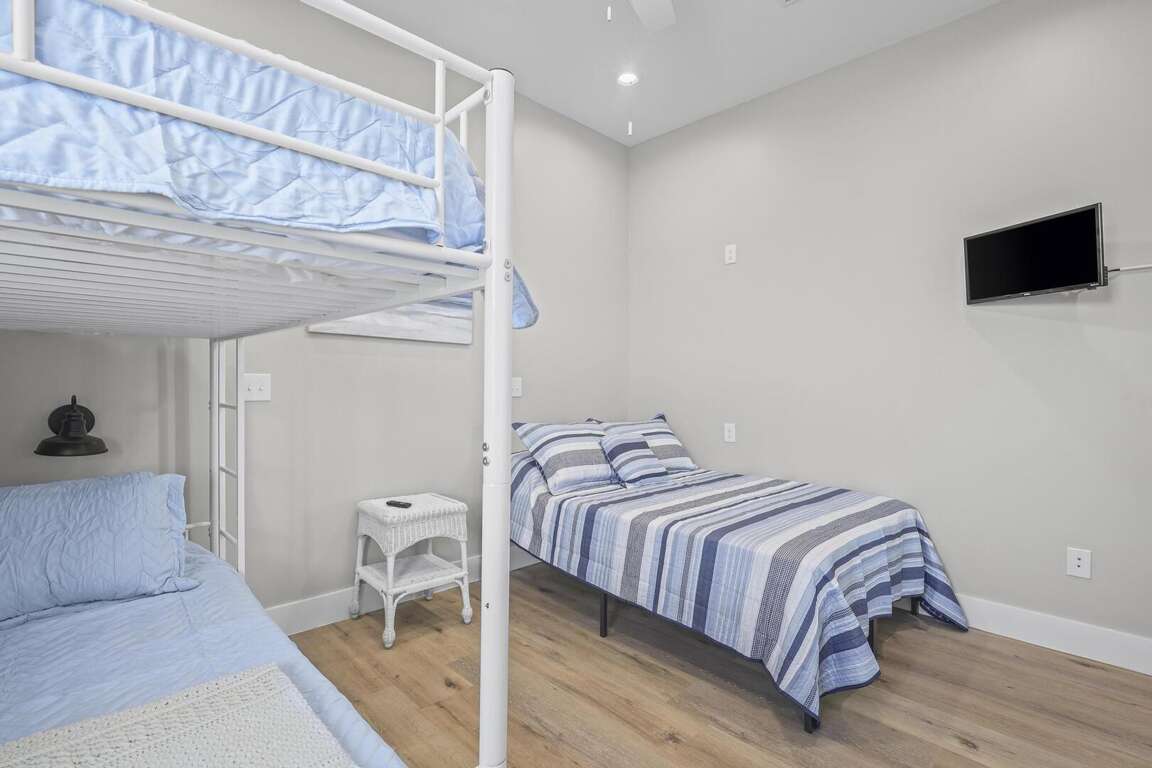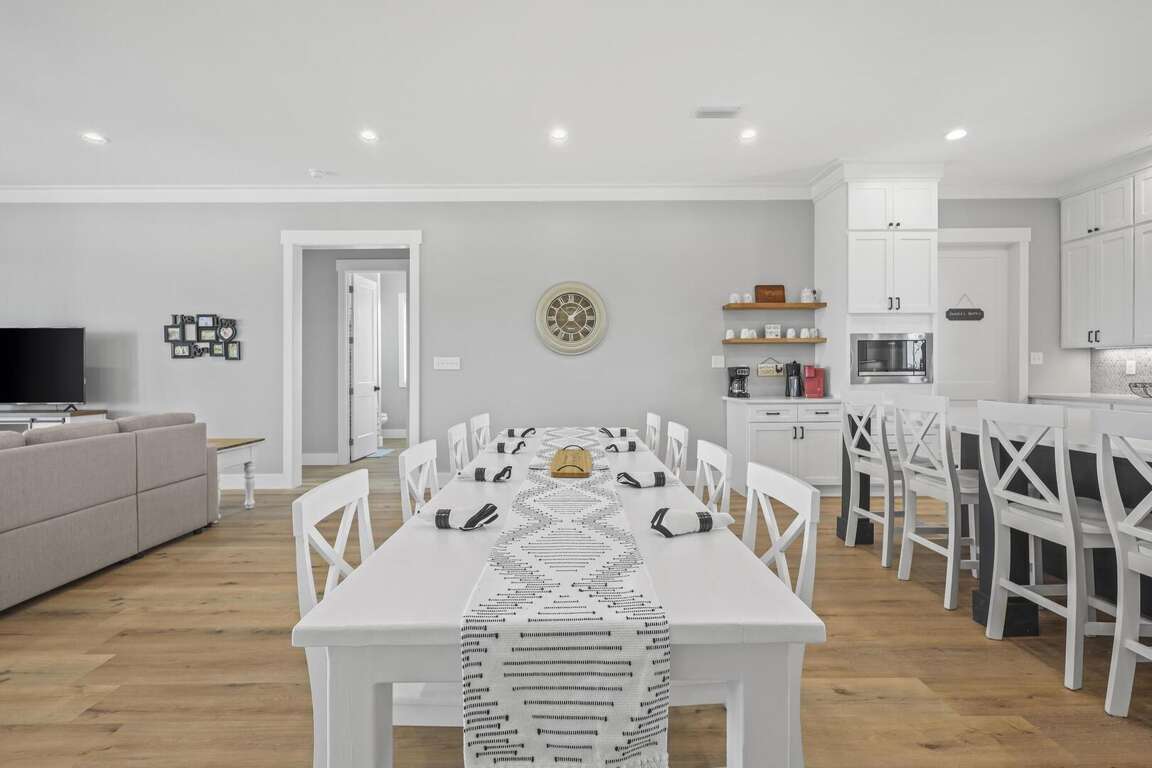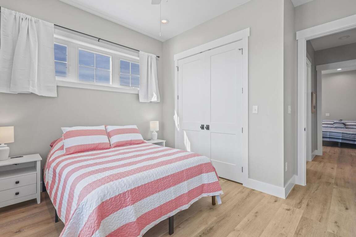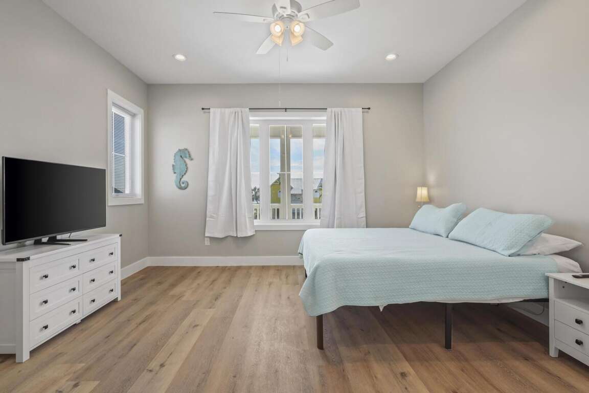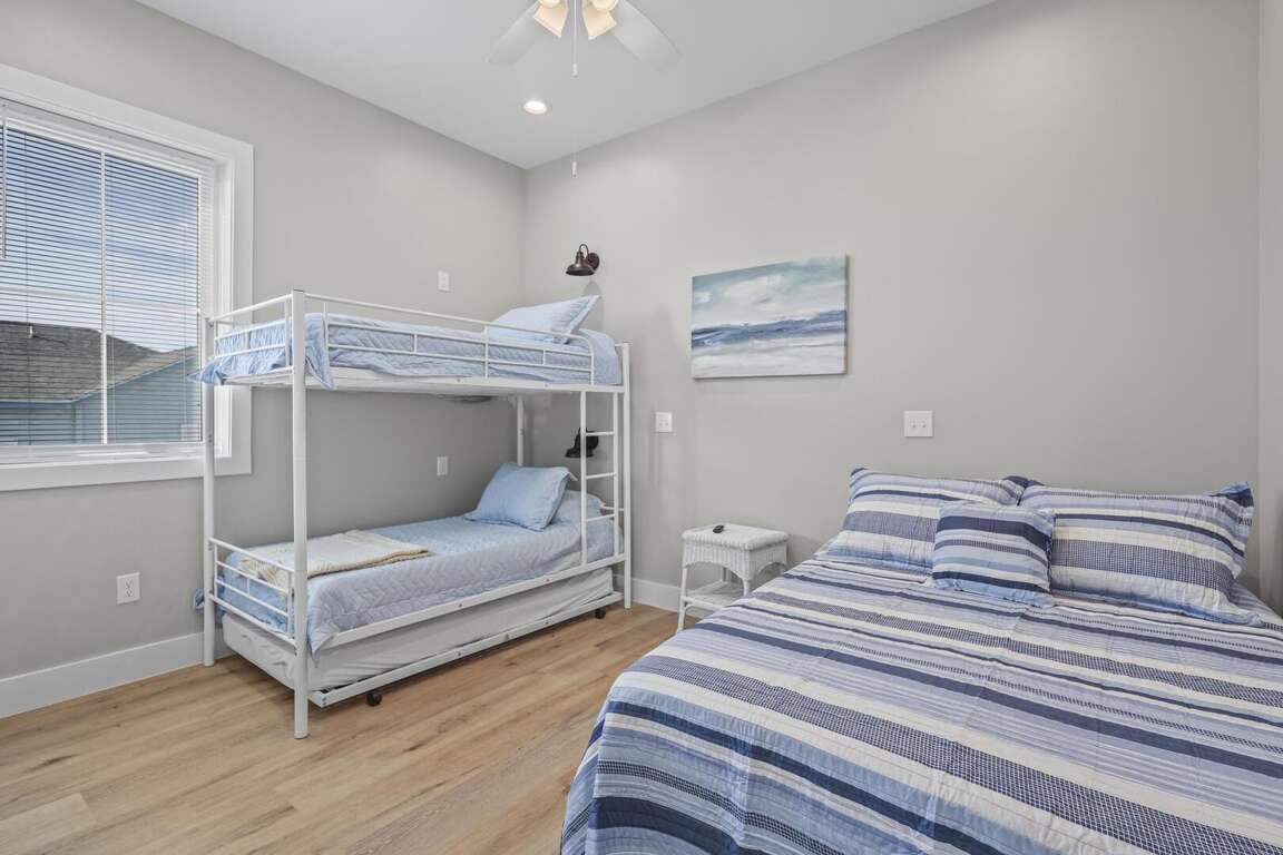 This home is not pet friendly. Minimum Age Requirement of 25. This home allows daily rentals year-round with a 3-night minimum. Welcome to Shell Yeah, a beautiful 3-bedroom, 2-bathroom Gulf-view home that comfortably sleeps 11. With bright coastal décor, spacious living areas, and sweeping views of the Gulf, this single-level home is ideal for families or groups looking for a relaxing beach retreat. Bedroom Details: Bedroom 1 (Master): King bed, TV, private bath Bedroom 2: Queen bed, TV Bedroom 3: Triple bunk (full + twins), TV Living Room: Sofa Sleeper Home Highlights: Gulf-view home located just steps from the beach Spacious open-concept living, dining, and kitchen area Fully equipped kitchen with modern appliances and large island Expansive windows and deck space for enjoying Gulf breezes 2 full bathrooms for guest comfort Washer and dryer included Sleeps 11, perfect for families and larger groups Why You’ll Love It: Shell Yeah combines coastal charm with modern comfort, making it the perfect home base for your Gulf Shores getaway. Spend mornings enjoying coffee on the deck with water views, afternoons soaking up the sun on the beach, and evenings relaxing in the open, airy living spaces. With its family-friendly layout and unbeatable location, Shell Yeah is ready to host your next unforgettable beach vacation.