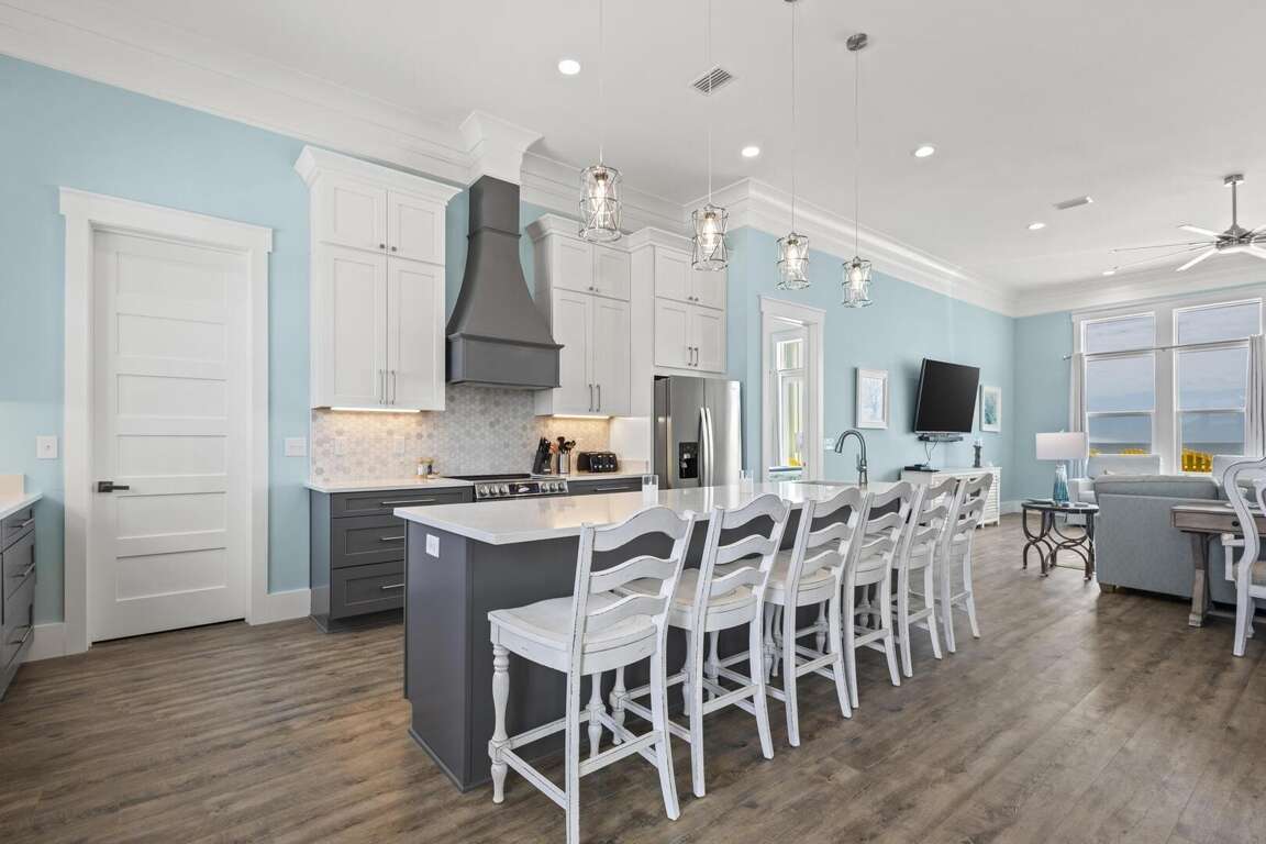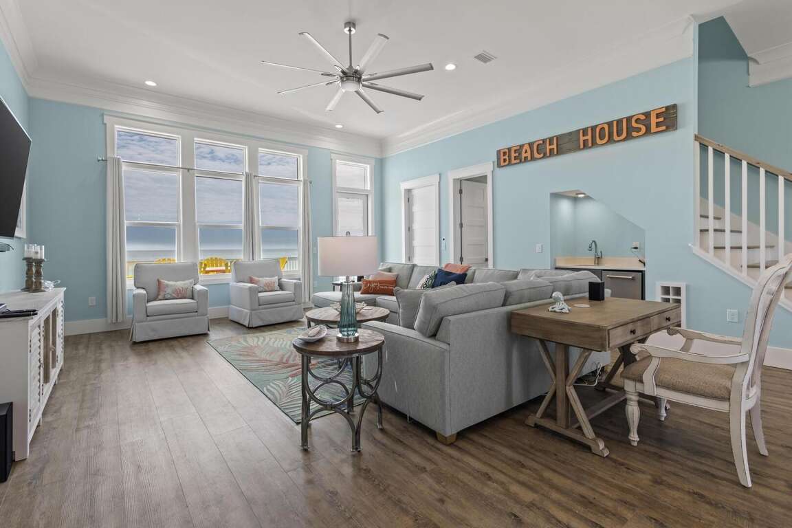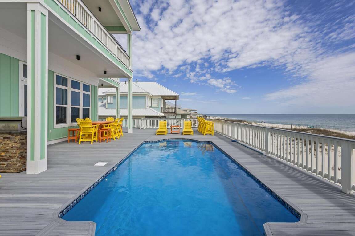 This home is not pet-friendly. Minimum Age Requirement 25. Rents Saturday to Saturday during main season unless the calendar is broken or the dates are approved by the homeowner. Welcome to Happy Life, a breathtaking 6-bedroom, 6.5-bathroom Gulf-front retreat designed for large groups and families. With expansive interiors, a private pool, and direct access to sugar-white sands, this spacious home delivers the ultimate beachside escape. Bedrooms by Level: Level 1 Bedroom 1 (Master): King bed, private en-suite bath, TV, balcony access Bedroom 2: King bed, private en-suite bath, TV, balcony access Level 2 Bedroom 3: King bed, private en-suite bath, TV, balcony access Bedroom 4: King bed, private en-suite bath, TV, balcony access Bedroom 5: Two Queen beds, private en-suite bath, TV Bedroom 6: Two Queen/Twin bunk beds, private en-suite bath, TV Home Highlights: Direct Gulf-front views with multiple furnished balconies Private pool and outdoor lounge area Spacious open-concept living room with abundant natural light Fully equipped modern kitchen with stainless steel appliances and two dining areas Elevator for added convenience 6 full bathrooms + 1 half bath for guest comfort Smart TVs throughout the home Washer/dryer available for guest use Why You’ll Love It: Happy Life is tailor-made for unforgettable family gatherings and group vacations. Whether you’re swimming in your private pool, enjoying sunrise views from the balcony, or relaxing in one of the six beautifully appointed bedrooms, this home provides the perfect blend of comfort and luxury. With its generous space and unbeatable Gulf-front location, Happy Life ensures that every moment of your beach getaway will be filled with joy and relaxation.