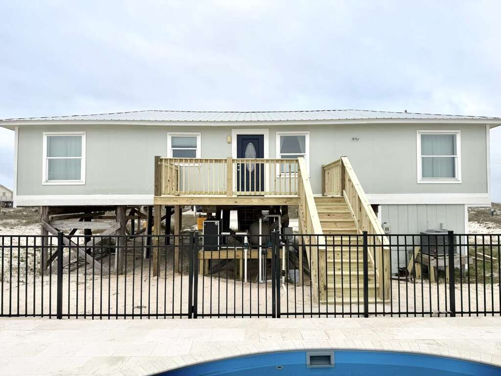 This property is pet-friendly for dogs 30 lbs. and under. The Minimum Age Requirement is 25. This home requires a Saturday to Saturday during peak season. Welcome to Sand By Me, a bright and inviting Gulf-view retreat perfect for families and small groups. With 4 bedrooms, 2 baths, and comfortable accommodations for up to 10 guests, this home blends coastal charm with modern convenience. Enjoy easy beach access, open living spaces, and a large deck to soak up the views of the Gulf of Mexico. Bedroom Details: Bedroom 1 (Master): King bed, TV Bedroom 2: King bed, TV Bedroom 3: Queen bed + Bunk bed, TV Bedroom 4: Bunk bed Home Highlights: Gulf-view location with easy access to the beach Spacious open living and dining areas with abundant natural light Fully equipped kitchen with modern appliances and island seating Large deck perfect for morning coffee, sunbathing, or evening gatherings Washer and dryer included for guest convenience Sleeps 10 comfortably with flexible bedding options Why You’ll Love It: Sand By Me offers the perfect mix of comfort and coastal living. Spend your mornings strolling the shoreline, afternoons lounging on the deck, and evenings enjoying meals together in the open living space. With its pet-friendly policy for small dogs, it’s an ideal home for families who want to bring along their furry companions. Whether you’re here for a weekend escape or an extended beach getaway, Sand By Me sets the stage for lasting Gulf Coast memories.