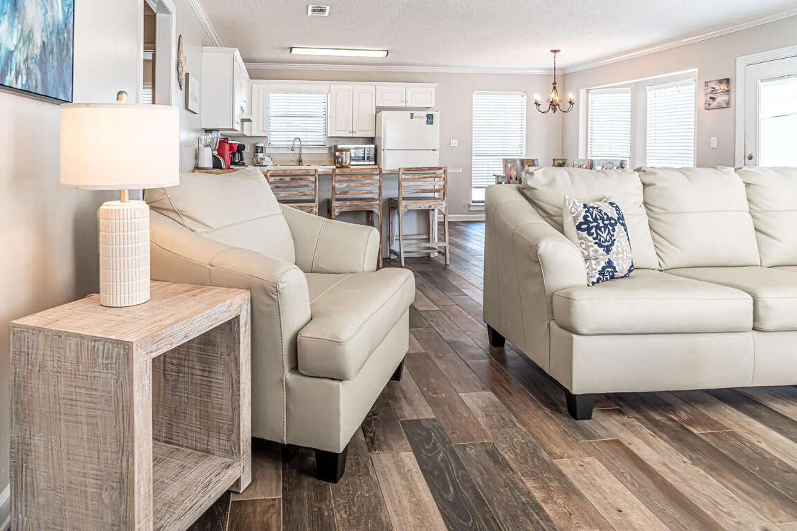 Year-to-date rebooking applies: if the current guest chooses to rebook, your reservation may be canceled with a full refund. Minimum age requirement: 25+ to book. Welcome to Hydrotherapy, a bright and comfortable 3-bedroom, 2-bath Gulf-view home that sleeps up to 10 guests. With spacious interiors, modern updates, and easy beach access just a short walk away, Hydrotherapy is the ideal retreat for families and groups looking to relax by the coast. Bedrooms by Level: Bedroom 1 (Master): King bed, TV, private bath, balcony access, located on level 1 Bedroom 2: Queen bed, TV, private bath, located on level 1 Bedroom 3: Full bed + Twin bed, TV, located on level 1 Living Room: Sofa Sleeper + Sleeper Chair for additional guests Home Highlights: Gulf-view home just steps from the beach Spacious open-concept living room with plenty of natural light Fully equipped kitchen with modern appliances and dining area Large deck with outdoor seating to enjoy salty breezes and sunsets Comfortably sleeps 10 with flexible bedding options Washer/dryer for guest convenience Why You’ll Love It: Hydrotherapy makes it easy to enjoy the best of beach living. Whether you’re relaxing on the deck, cooking meals together in the open kitchen, or heading out for a day of sun and sand, this home is designed for comfort and convenience. With cozy bedrooms and extra sleeping space, everyone has a spot to unwind. Gulf views, an easy walk to the water, and a peaceful location make Hydrotherapy a perfect coastal escape.
