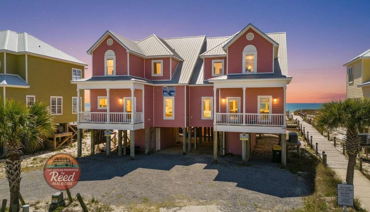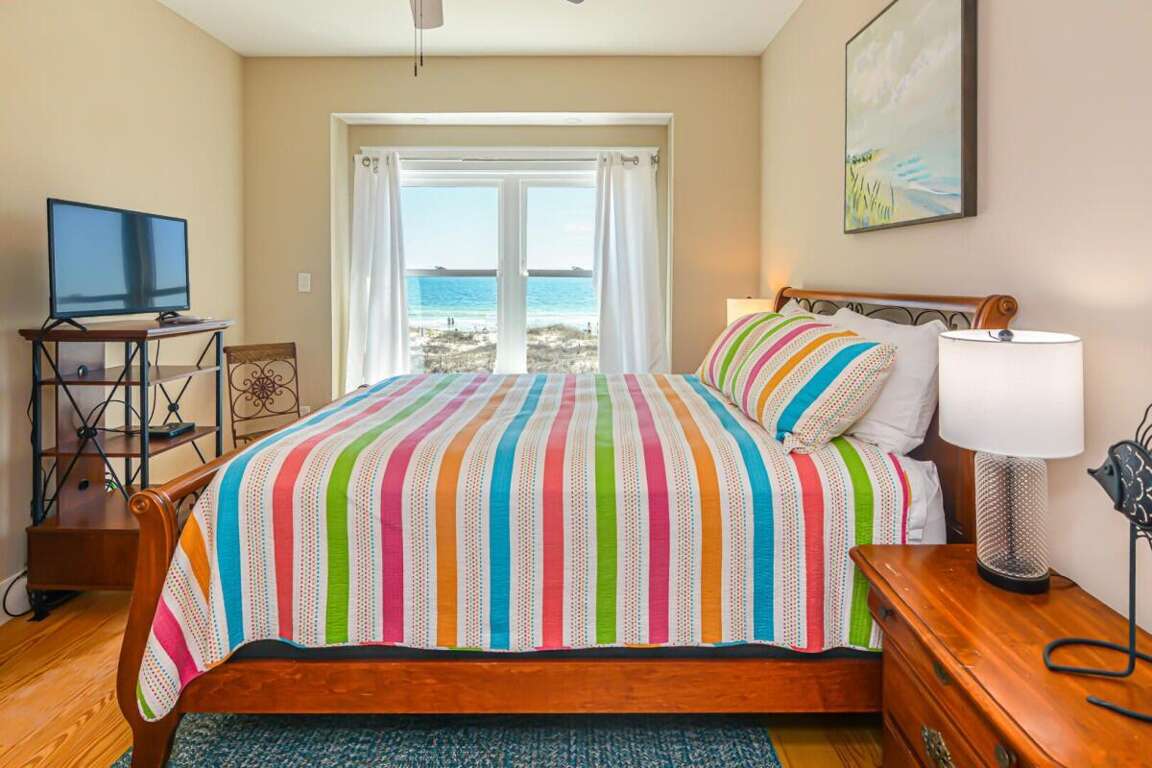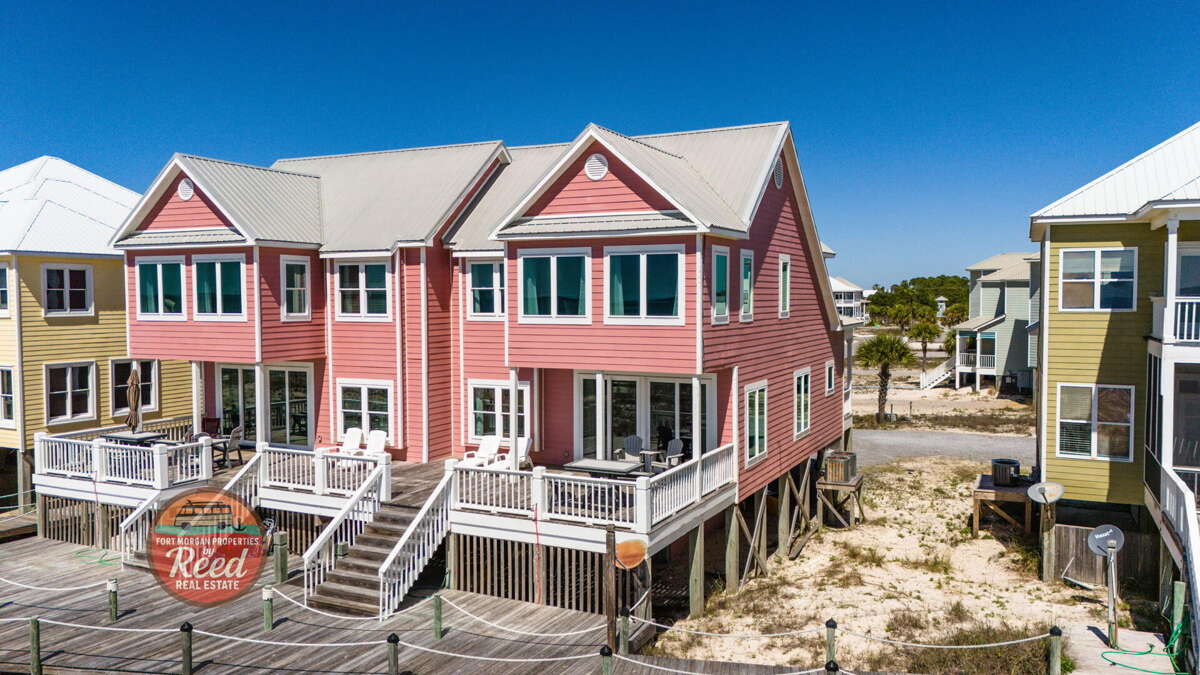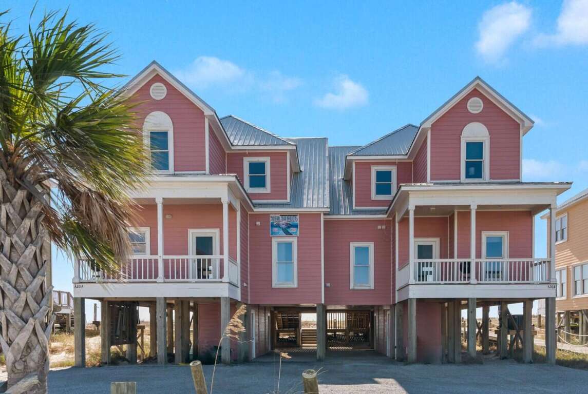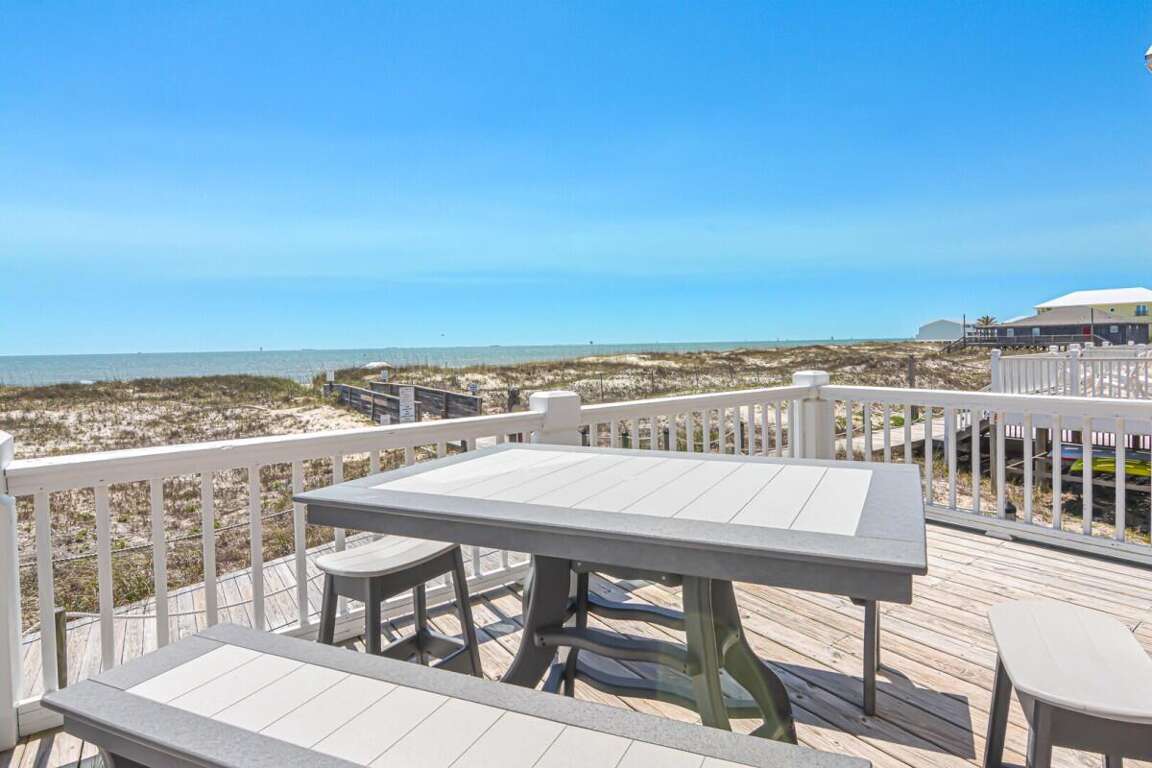 This home is not pet friendly. Minimum age requirement: 25+ to book. Saturday-to-Saturday rentals during peak summer season. Welcome to Sea Turtle East #11, a stunning 4-bedroom, 4-bathroom Gulf-front duplex in the Bay to Breakers Subdivision. With plenty of space to comfortably sleep 10, this two-story home is perfect for families or groups wanting a relaxing coastal escape. Enjoy sweeping views of the Gulf, easy access to the beach, and a community pool for when you need a break from the sand. Bedrooms by Level: Bedroom 1 (Master): King bed, TV, private bath, balcony access, located on level 1 Bedroom 2: King bed, private bath, TV, located on level 2 Bedroom 3: Queen bed, TV, shared bath, located on level 2 Bedroom 4: Bunk room with 2 bunk beds (twin over twin), TV, shared bath, located on level 2 Home Highlights: Gulf-front duplex with direct boardwalk access to the beach Spacious open-concept living and dining area with gorgeous Gulf views Fully equipped kitchen with modern appliances and ample seating Large Gulf-facing deck and balcony for outdoor dining and relaxation Access to community pool and hot tub 4 full bathrooms for guest convenience Washer and dryer included Sleeps 11 comfortably, ideal for families or small groups Why You’ll Love It: Sea Turtle East #11 is a perfect spot for making memories on the Gulf Coast. Spend your mornings sipping coffee with panoramic water views, your afternoons swimming in the Gulf or relaxing poolside, and your evenings gathered in the bright, coastal-inspired living spaces. With its prime location and family-friendly layout, this home has everything you need for a laid-back, unforgettable beach getaway.