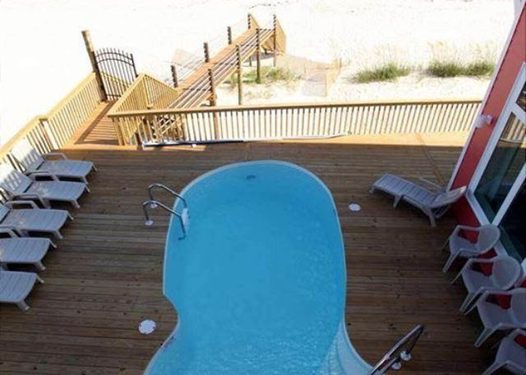 This house is not pet friendly. Must be 25+ to book. Welcome to O My Scallops, a stunning Gulf-front retreat in the Surfside Shores community. With 6 bedrooms and 5.5 bathrooms, this spacious beach home comfortably accommodates up to 18 guests and features a private pool, expansive balconies, and breathtaking views of the Gulf. Perfect for large groups or families, O My Scallops combines comfort and luxury for an unforgettable beach getaway. Bedrooms by Level: Bedroom 1 (Master): King bed, TV, private bath, balcony access Bedroom 2: King bed, TV, private bath Bedroom 3: King bed, TV, private bath Bedroom 4: King bed, TV, private bath, balcony access Bedroom 5: Bunk bed, TV Bedroom 6: Bunk bed, TV Home Highlights: Private Gulf-front pool with sundeck Expansive balconies with panoramic beach views Spacious open-concept living and dining areas Fully equipped kitchen with modern appliances and bar seating Multiple master suites with en-suite baths Washer/dryer for guest convenience Perfect for large groups with sleeping space for up to 18 Why You’ll Love It: O My Scallops is designed for relaxation and togetherness, offering all the comforts of home plus the luxury of a beachfront setting. Spend your days lounging by the private pool, enjoying meals with family in the large dining area, or soaking up the Gulf views from the balconies. Whether you’re planning a reunion, a group vacation, or just want space to spread out, this home is the perfect choice for your Fort Morgan escape.