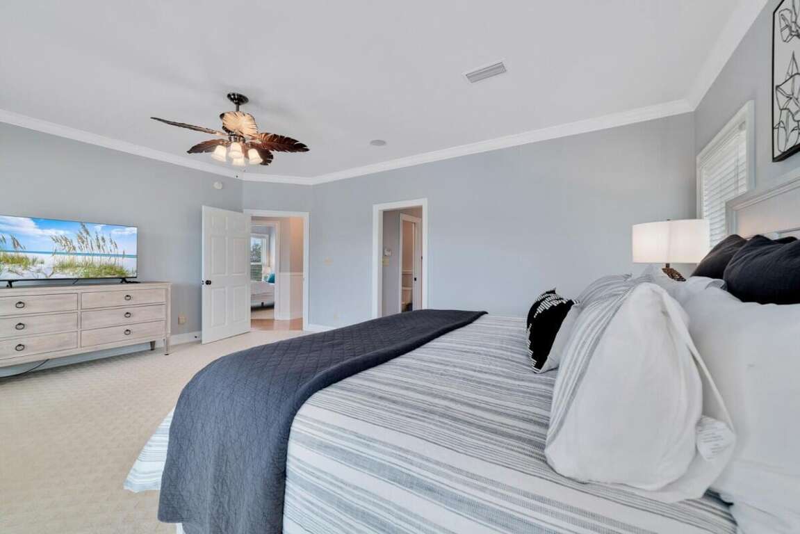 Rents Saturday to Saturday during peak summer months (June–August). Year-to-date rebooking policy in place. This unit is pet friendly. Must be 25+ to book. Welcome to Kiva Dunns, a beautifully designed 5-bedroom, 4.5-bath coastal retreat that sleeps up to 16 guests. Located in the desirable Kiva area, this spacious home offers comfort, style, and plenty of room for gathering both indoors and outdoors. Bedrooms by Level: Bedroom 1 (Master): King bed, private bath, balcony access, located on main level Bedroom 2: Queen bed, located on main level Bedroom 3: Queen bed, private bath, balcony access, located on main level Bedroom 4: Queen bed, private bath, balcony access, located on main level Bedroom 5: Bunk beds, located on main level Home Highlights: Pet-friendly property with space for the whole family Expansive decks and porches with multiple seating areas Spacious living and dining areas with fireplace and large windows Fully equipped kitchen with granite countertops and modern appliances Washer/dryer included for guest use Sleeps up to 16 comfortably with flexible bedroom arrangements Why You’ll Love It: Kiva Dunns offers the perfect blend of space and comfort, ideal for large families or groups traveling together. Relax on the porches with Gulf breezes, gather in the open living spaces for meals or game nights, and take advantage of the home’s convenient location near the beach and local attractions. With plenty of room for everyone, this home is designed for making lasting memories.