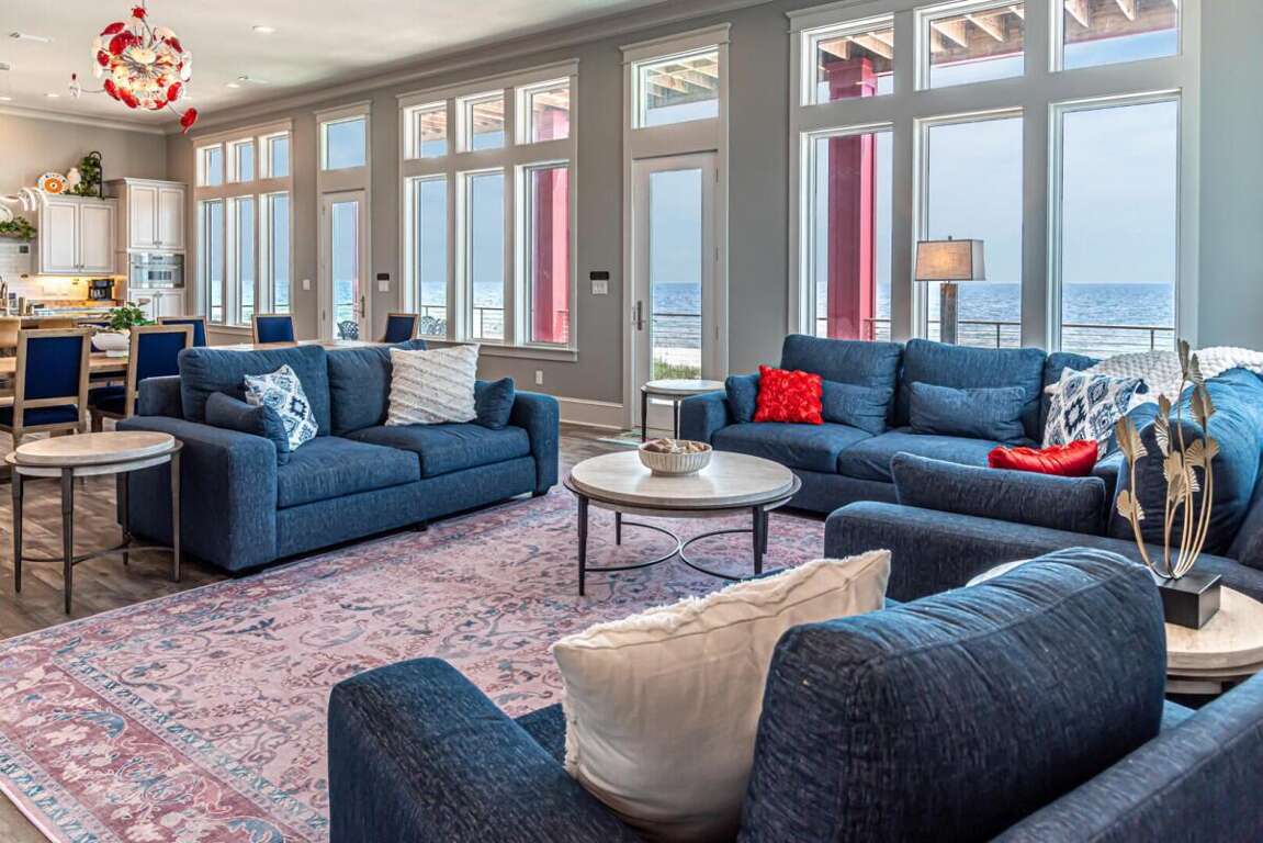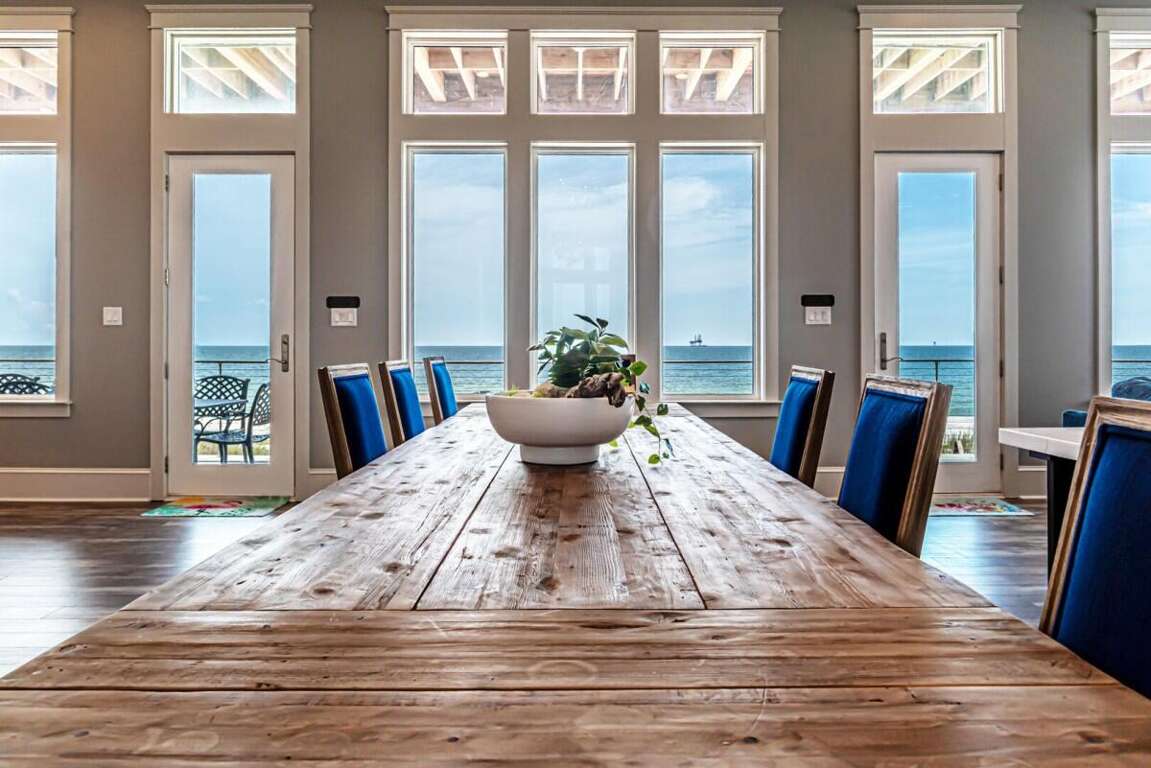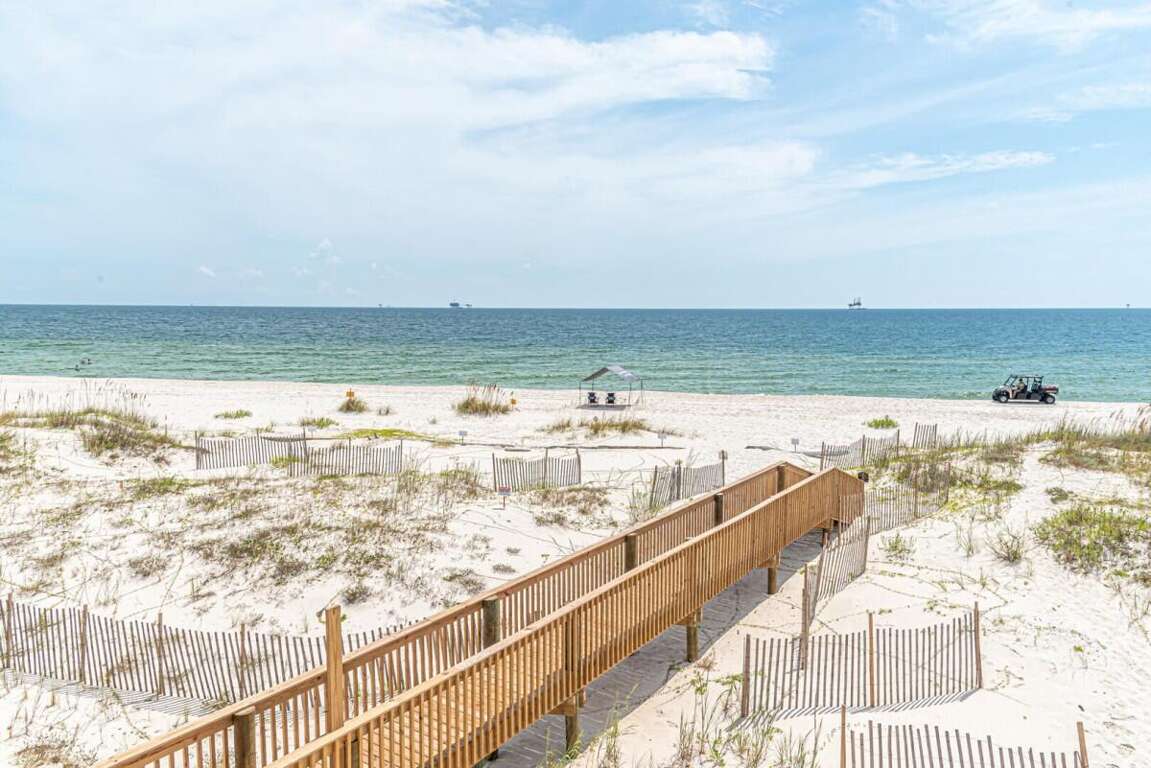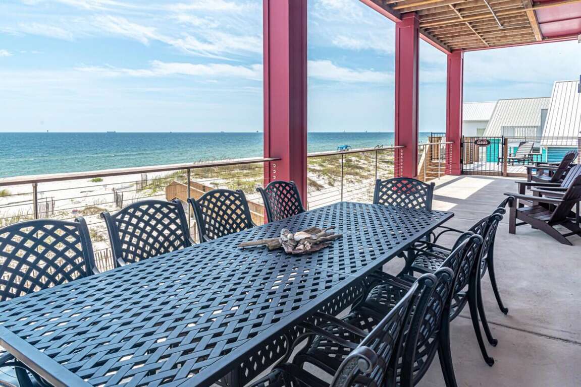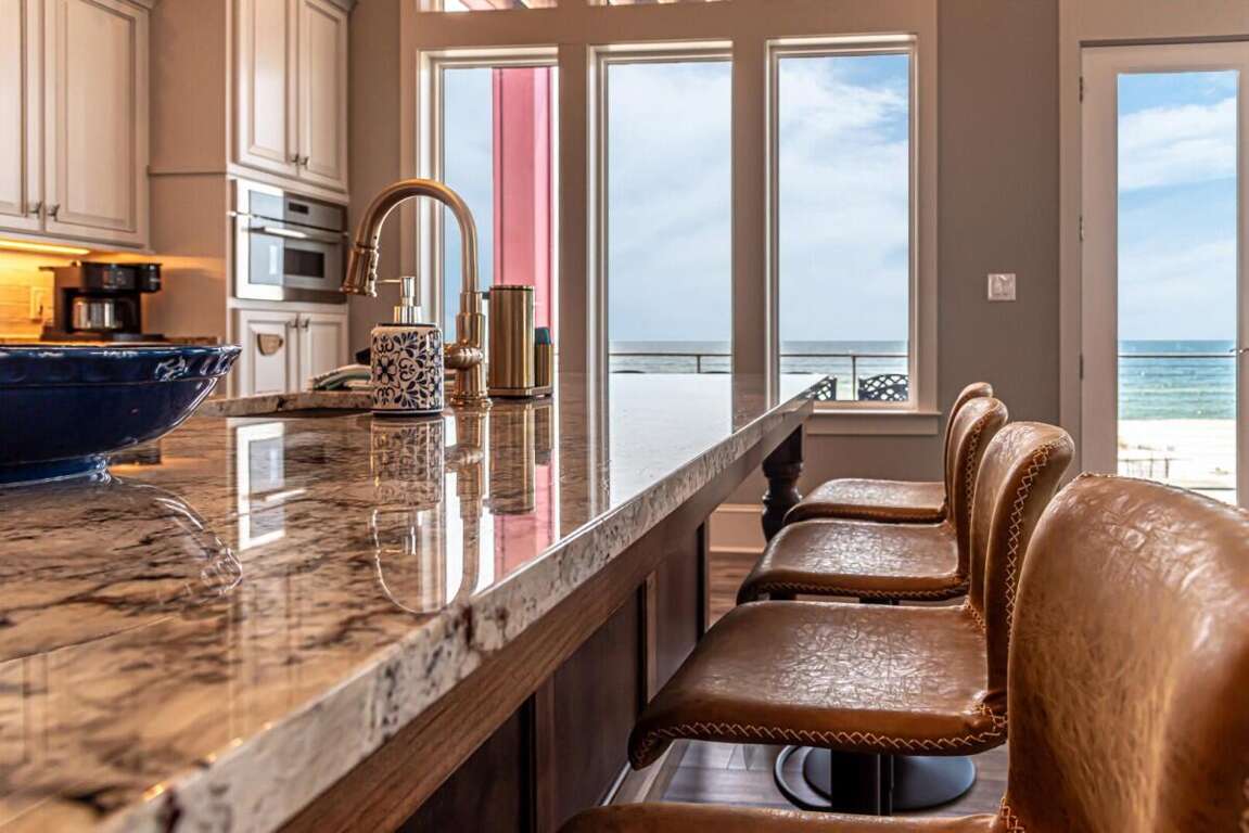 This property is not pet friendly. Minimum Age Requirement of 25. Home rents Saturday to Saturday only during peak season unless approved by the homeowner or calendar is already broken up. Welcome to Coco Bella, a beautifully designed 4-bedroom, 3.5-bath Gulf-front retreat that perfectly blends modern luxury with beachside comfort. With 3,976 sq. ft. of living space, private pool, elevator, and room to sleep up to 8 guests, this home is the ideal choice for families or groups seeking an upscale coastal getaway. Bedroom Details: Master Suite: King bed, private en-suite bath, TV Bedroom 2: Queen bed, private en-suite bath, TV Bedroom 3: Queen bed, private en-suite bath, TV Bedroom 4: Bunk bed (2 twins), TV Home Highlights: Private Gulf-front pool Spacious open-concept living area with vaulted ceilings and coastal décor Fully equipped gourmet kitchen with premium appliances, double refrigerators, and large island with bar seating Expansive dining table perfect for large family meals Multiple en-suite bedrooms for added privacy Elevator for convenience Large decks and outdoor seating areas with panoramic beach views Washer/dryer included Why You’ll Love It: Coco Bella offers the ultimate Gulf Coast experience—whether you’re relaxing by your private pool, dining on the expansive deck with sweeping ocean views, or enjoying the easy beach access just steps away. Designed with both luxury and comfort in mind, this property ensures that every moment of your stay feels special. Spacious interiors, a chef’s dream kitchen, and breathtaking sunsets over the Gulf make Coco Bella the perfect setting for your next Fort Morgan vacation.