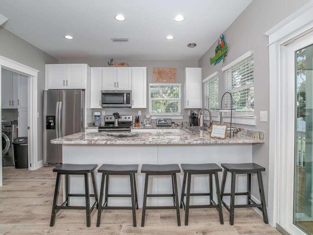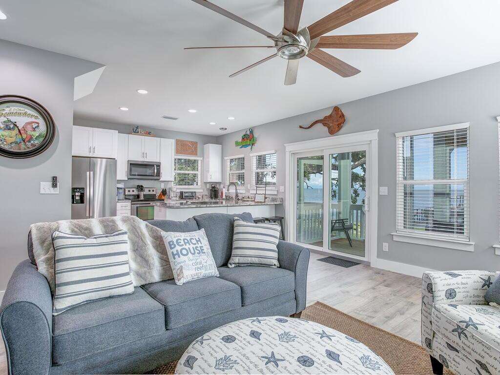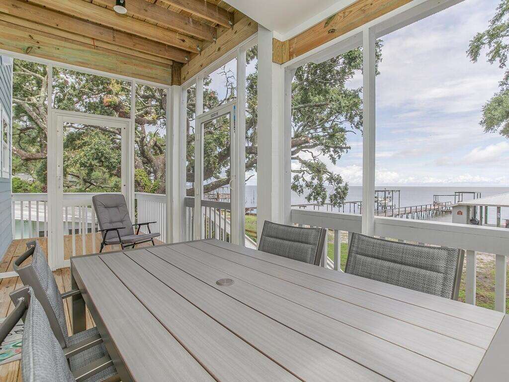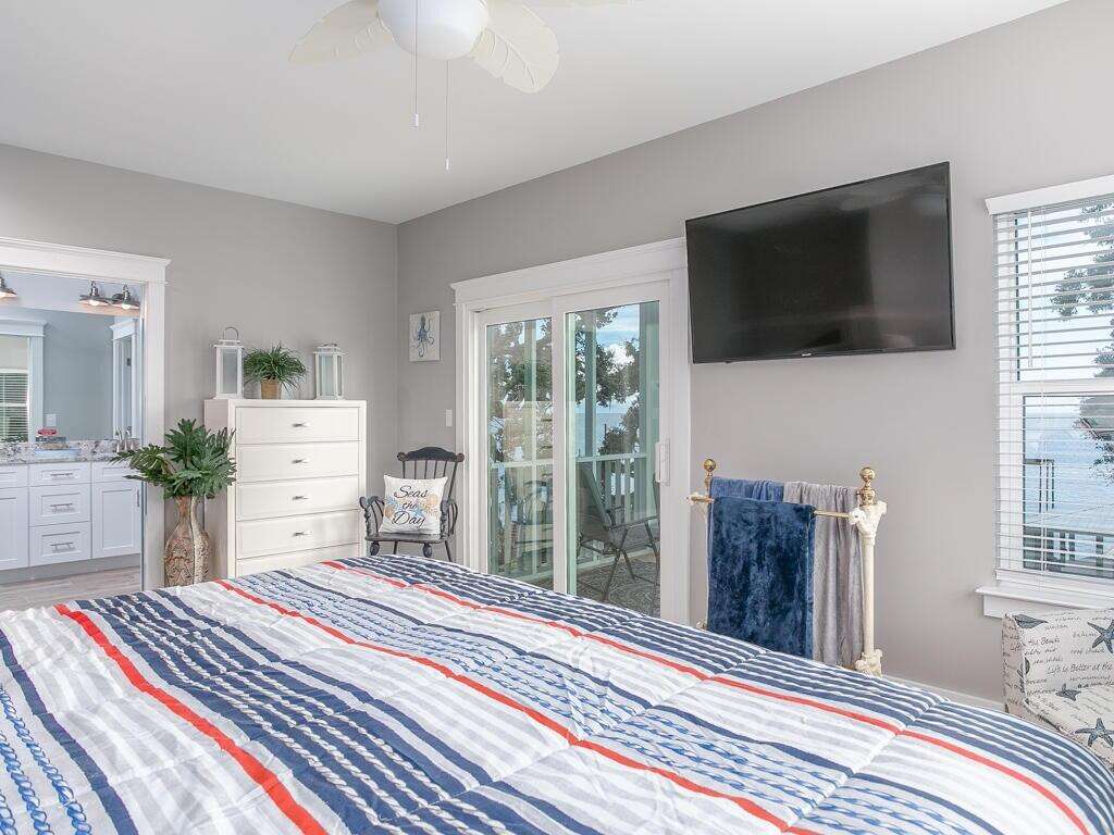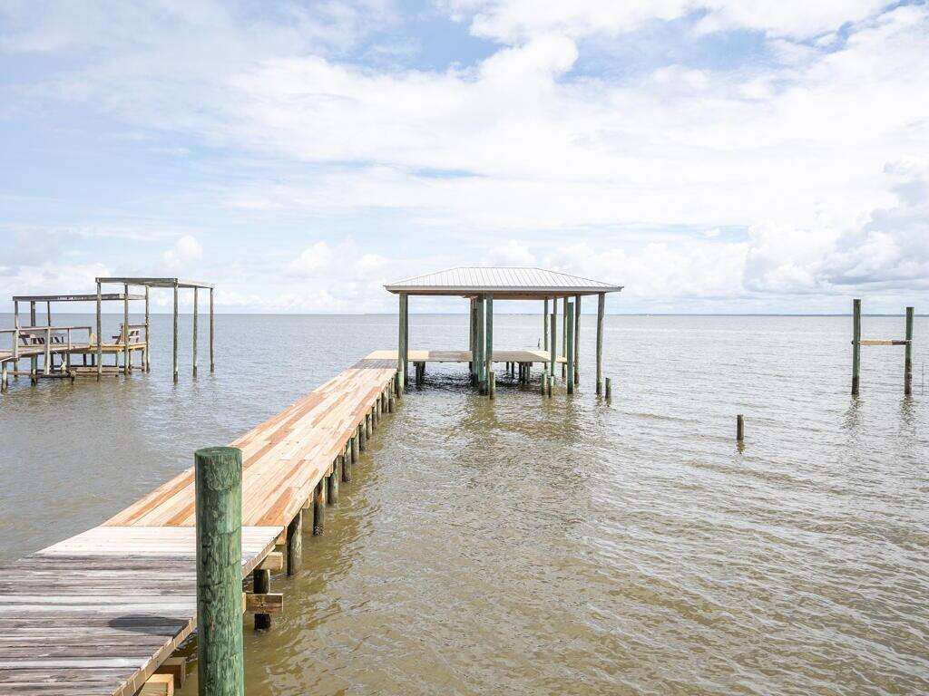 Minimum age to rent: 25+. No pets allowed. Saturday-to-Saturday rentals during peak summer (June–mid-August). Year-to-date reservation policy applies: If the current guest rebooks, your reservation may be canceled and fully refunded. Welcome to Crimson Cabana, a 3-bedroom, 3-bath bayfront retreat that sleeps up to 8 guests. Nestled at mile marker 8, this beautiful home offers peaceful waterfront living with a private pier and plenty of space to relax and unwind. With updated interiors, a bright open floor plan, and multiple outdoor living spaces, Crimson Cabana is perfect for families or groups looking for a serene Fort Morgan escape. Bedrooms by Level: Bedroom 1 (Master): King bed, private en-suite bath, TV, balcony access with bay views Bedroom 2: Queen bed, TV Bedroom 3: Queen bed, private bath, TV Home Highlights: Bayfront location with private fishing pier and boat dock Spacious living area with comfortable seating and large TV Fully equipped kitchen with stainless appliances and breakfast bar Covered outdoor seating and picnic area Outdoor shower for rinsing off after a day on the water Washer/dryer for guest use Balconies with stunning bay views Why You’ll Love It: Crimson Cabana offers the best of bayfront living: peaceful water views, direct access to fishing and boating, and modern comforts throughout the home. Whether you’re enjoying a meal on the balcony, casting a line off the private pier, or relaxing in the open-concept living space, this home is designed for easy coastal living. With its serene location and stylish design, Crimson Cabana is the perfect Fort Morgan getaway.