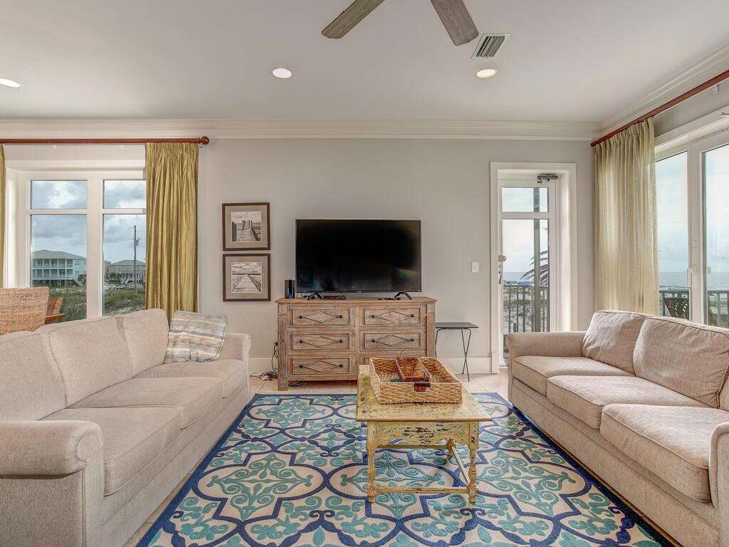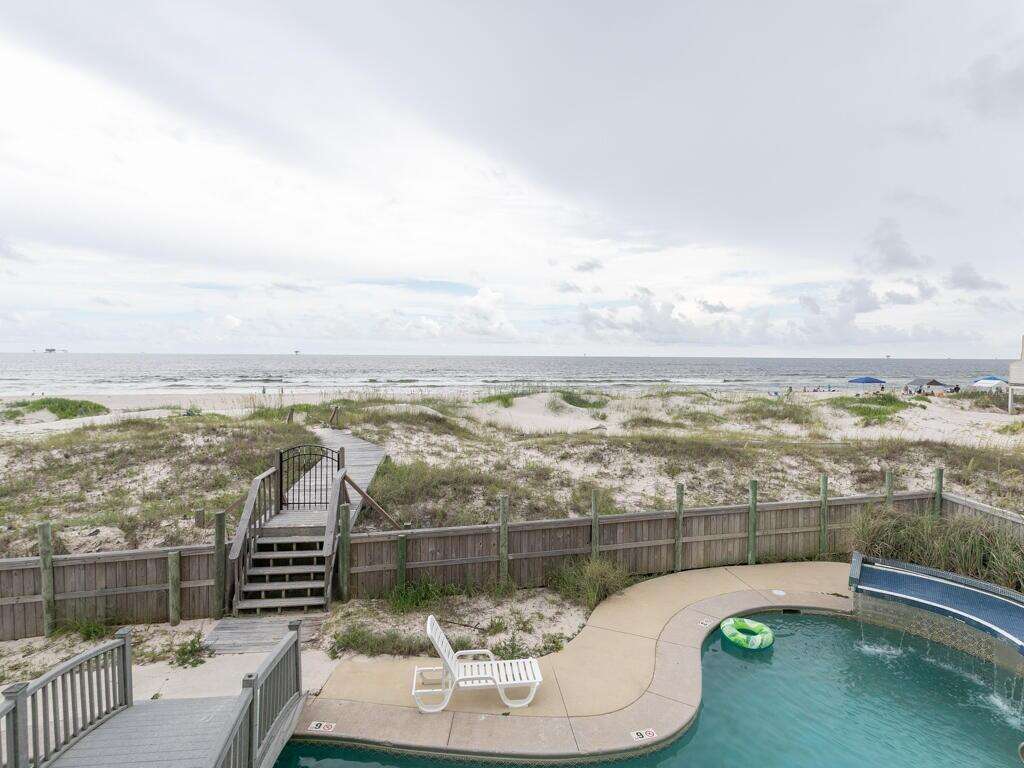 Sunday-to-Sunday rentals during summer season. Year-to-date reservation policy: If the current guest rebooks, we reserve the right to cancel and fully refund your reservation. This property is Pet-friendly. Must be 25+ to book. Welcome to Escapades South Bottom, a spacious Gulf-front 4-bedroom, 4.5-bath duplex that sleeps up to 16 guests. With direct beach access, an elevator, and plenty of room for large groups, this home offers the perfect setting for your next Fort Morgan getaway. Bedrooms by Level: Bedroom 1 (Master): King bed, private en-suite bath, TV, balcony access Bedroom 2: King bed, private en-suite bath, TV Bedroom 3: King bed, private en-suite bath Bedroom 4: 4 Twin bunks, private en-suite bath Home Highlights: Gulf-front location with amazing beach views Spacious living and dining area with comfortable seating Fully equipped kitchen with modern appliances and granite countertops Elevator for easy access Large balconies perfect for relaxing with Gulf views Access to community pool and hot tub Washer/dryer for guest use Why You’ll Love It: Escapades South Bottom is ideal for large groups and families who want plenty of space right on the beach. With a bright, open layout, private baths for each bedroom, and unbeatable views of the Gulf, this home makes beach vacations easy and memorable. Spend your days on the sand, your evenings sharing meals, and your nights relaxing on the deck as the waves roll in.