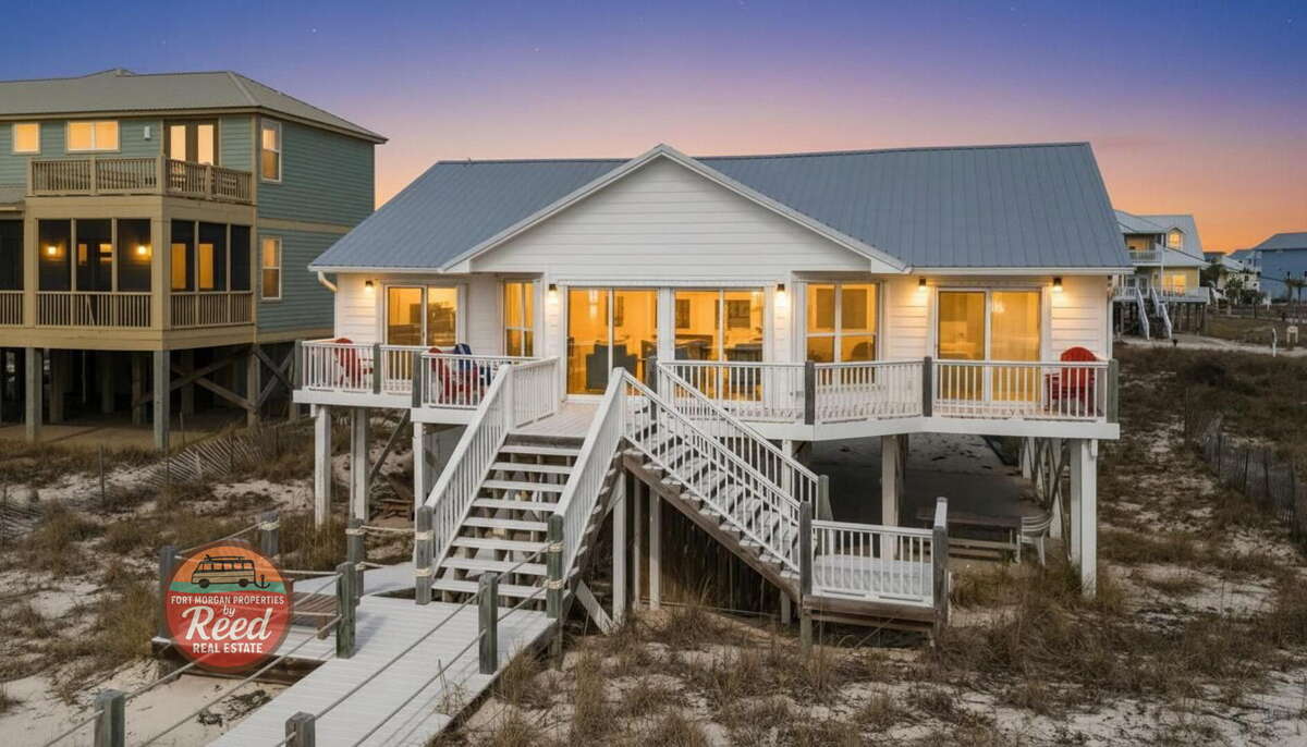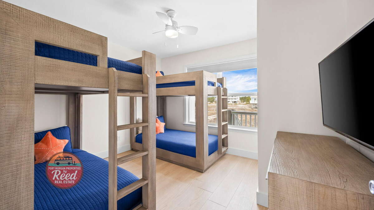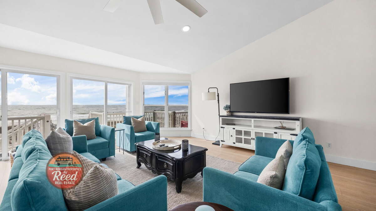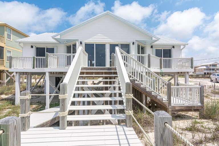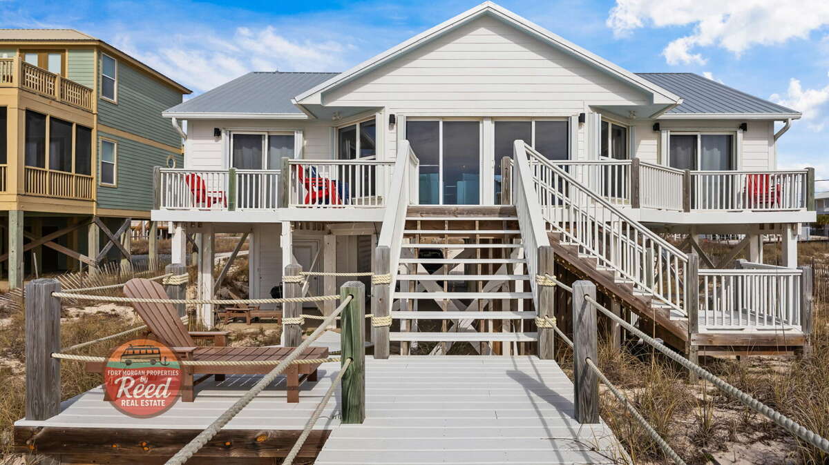 This home is not pet-friendly. Minimum Age Requirement of 25. Rents Saturday to Saturday during Main Seasons unless calendar is already broken up or requested time is approved by homeowner. Welcome to Christmas Bonus, a charming 4-bedroom, 2-bath Gulf-front home in Fort Morgan. With room to sleep up to 10 guests, this bright and inviting coastal retreat is perfect for families or groups looking for a classic beach getaway. Enjoy expansive Gulf views, a spacious open floor plan, and direct beach access right outside your door. Bedrooms by Level: Level 1 – Master Suite: King bed, private en-suite bath, balcony access, TV Level 1 – Bedroom 2: King bed, TV, balcony access Level 1 – Bedroom 3: Queen bed, TV Level 1 – Bedroom 4: 2 Bunk beds (4 twins) Home Highlights: Direct Gulf-front home with unbeatable views Spacious deck for lounging, dining, or soaking in the coastal breeze Bright open-concept living, dining, and kitchen area with modern furnishings Fully equipped kitchen with large island and ample seating Multiple bedrooms with TVs for added convenience Washer/dryer for guest use Comfortable layout ideal for families and groups Why You’ll Love It: Christmas Bonus combines comfort, charm, and location for the perfect Fort Morgan vacation. Whether you’re enjoying morning coffee on the deck, walking right onto the sugar-white sands, or gathering with family in the open living area, this home offers everything you need for a relaxing stay. With its Gulf-front views and family-friendly setup, it’s a true bonus for your beach vacation.