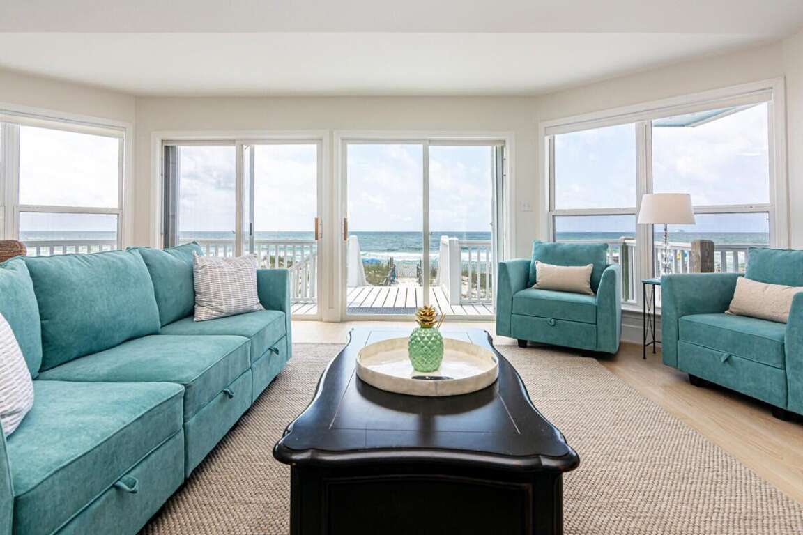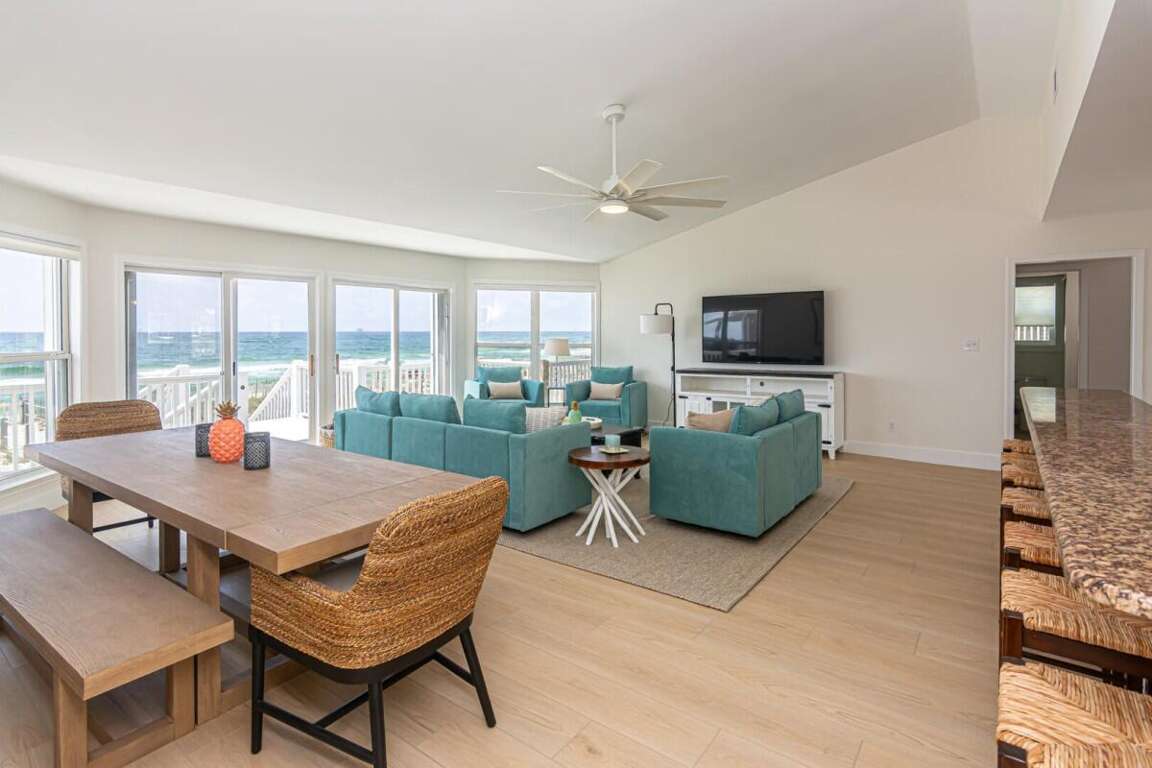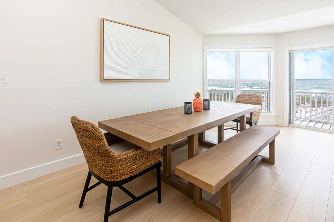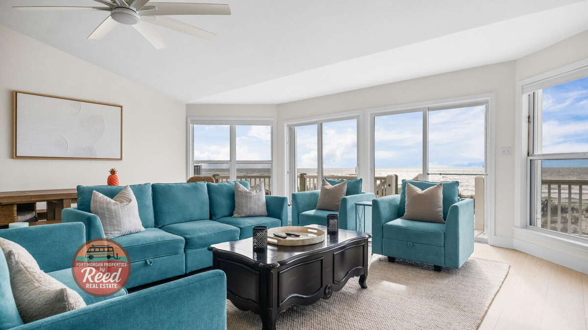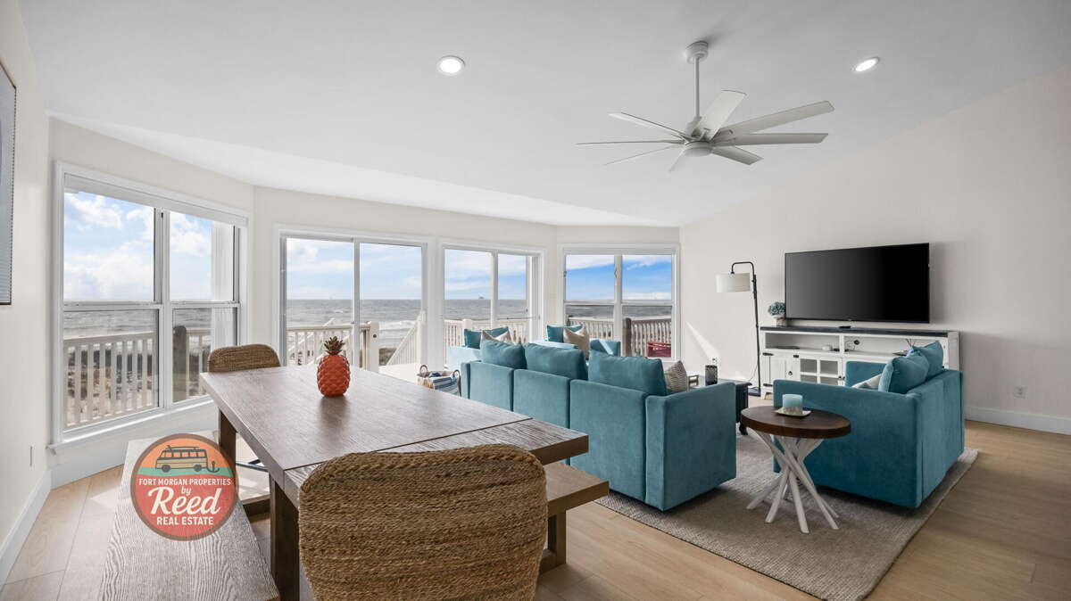 This home is not pet-friendly. Minimum Age Requirement of 25. Rents Saturday to Saturday during Main Seasons unless calendar is already broken up or requested time is approved by homeowner. Welcome to Christmas Bonus, a charming 4-bedroom, 2-bath Gulf-front home in Fort Morgan. With room to sleep up to 10 guests, this bright and inviting coastal retreat is perfect for families or groups looking for a classic beach getaway. Enjoy expansive Gulf views, a spacious open floor plan, and direct beach access right outside your door. Bedrooms by Level: Level 1 – Master Suite: King bed, private en-suite bath, balcony access, TV Level 1 – Bedroom 2: King bed, TV, balcony access Level 1 – Bedroom 3: Queen bed, TV Level 1 – Bedroom 4: 2 Bunk beds (4 twins) Home Highlights: Direct Gulf-front home with unbeatable views Spacious deck for lounging, dining, or soaking in the coastal breeze Bright open-concept living, dining, and kitchen area with modern furnishings Fully equipped kitchen with large island and ample seating Multiple bedrooms with TVs for added convenience Washer/dryer for guest use Comfortable layout ideal for families and groups Why You’ll Love It: Christmas Bonus combines comfort, charm, and location for the perfect Fort Morgan vacation. Whether you’re enjoying morning coffee on the deck, walking right onto the sugar-white sands, or gathering with family in the open living area, this home offers everything you need for a relaxing stay. With its Gulf-front views and family-friendly setup, it’s a true bonus for your beach vacation.