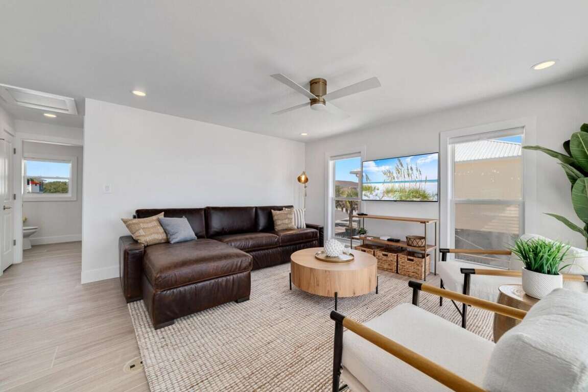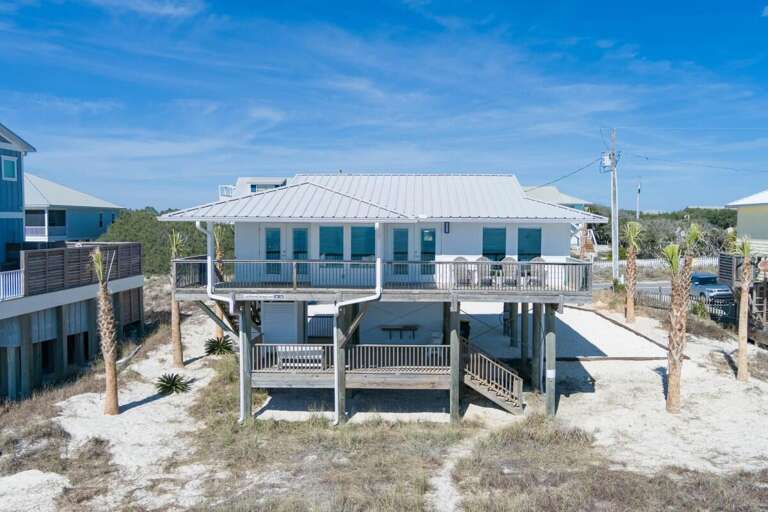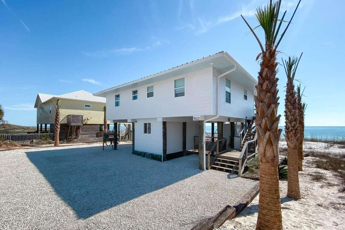 Sat. -Sat. rentals preferred during peak seasons. This property is not pet friendly. Year-to-date rebooking policy applies. Minimum Age Requirement of 25. Welcome to Lost Palms, a charming 2-bedroom, 2-bath Gulf-front home located in the Surfside Shores subdivision. With room for up to 6 guests, this cozy retreat offers stunning beachfront views, updated interiors, and everything you need for a relaxing beach vacation. Bedroom Details: Bedroom 1 (Master): King bed, private bath, TV included Bedroom 2: 2 Twin bunk beds, TV included Home Highlights: Gulf-front location with direct beach access Spacious deck with seating and breathtaking views Bright, open living area with plenty of natural light Fully equipped kitchen with modern appliances Washer/dryer provided for guest convenience Sleeps 6 comfortably with flexible sleeping arrangements Why You’ll Love It: Lost Palms is the perfect mix of comfort and coastal simplicity. Step outside to the sandy shores just beyond your deck, enjoy sunrises over the water, and gather in the airy living spaces after a day in the surf. Whether you’re here for family time, a couples’ getaway, or a quiet escape, Lost Palms provides the ideal Gulf-front setting for making unforgettable beach memories.