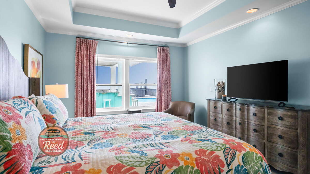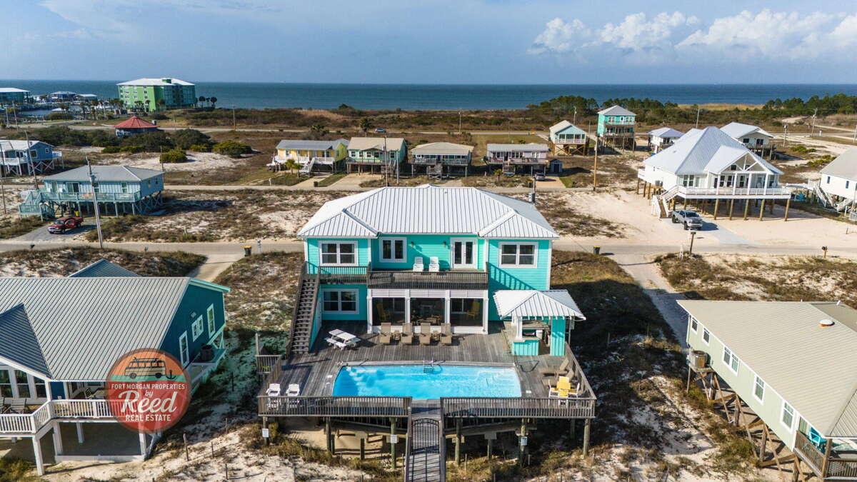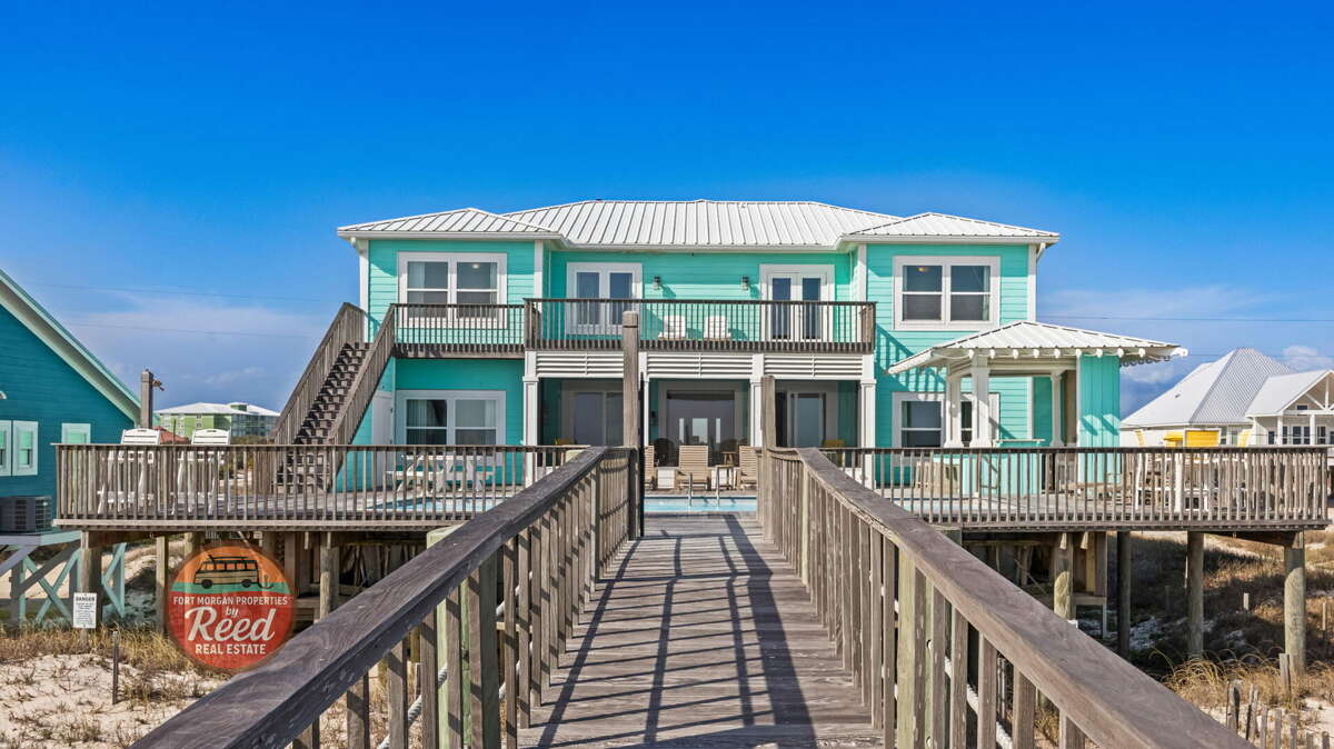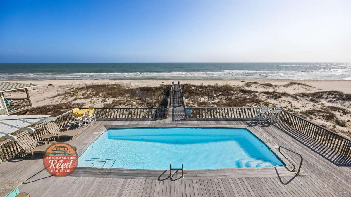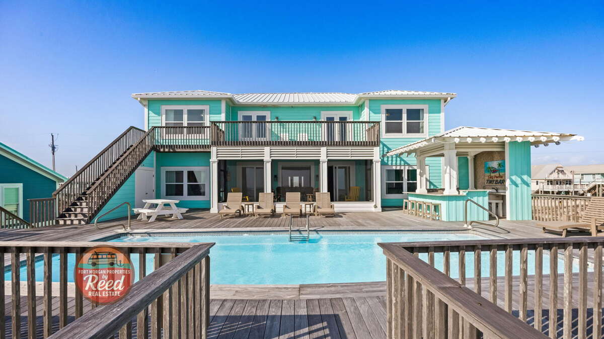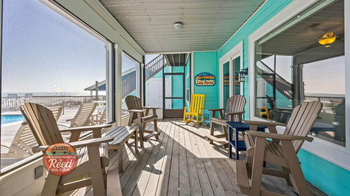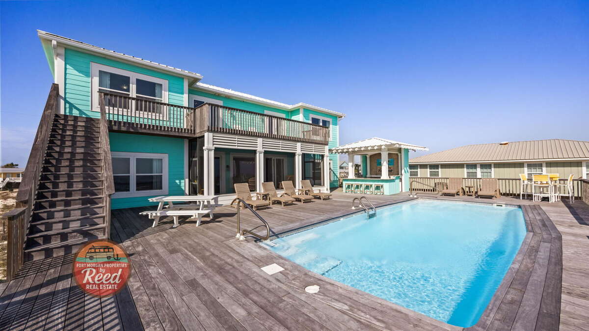 Saturday-to-Saturday rentals during peak season. Pool heating available seasonally (not offered Memorial Day – Labor Day). This property is not pet friendly. Must be 25+ to book. Welcome to Lazy Parrot, a luxurious 5-bedroom, 5.5-bath Gulf-front retreat designed for families and large groups seeking both comfort and sophistication. With over 4,000 sq. ft. of living space, four king master suites with stunning Gulf views, and a private pool just steps from the beach, this home offers the ultimate Fort Morgan escape. Bedrooms by Level: Level 1: Bedroom 1 (Master): King bed, private bath, TV, Gulf-front Bedroom 2: King bed, private bath, TV, Gulf-front Level 2: Bedroom 3: King bed, private bath, TV, Gulf-front Bedroom 4: Queen bed, private bath, TV, Gulf-front Bedroom 5 (Bunkroom): Sleeps up to 5, private bath, TV Home Highlights: Gulf-front location with direct beach access Private pool with seasonal heating available Four king master suites facing the Gulf Bunkroom that sleeps up to five guests Spacious loft with additional sleeping area Expansive decks with plenty of seating and panoramic Gulf views Open-concept living, dining, and kitchen areas ideal for entertaining Fully equipped kitchen with modern appliances and oversized island Five en-suite bathrooms plus an additional half bath Washer/dryer included for guest use Sleeps up to 15 guests comfortably Why You’ll Love It: Lazy Parrot combines elegance and coastal charm with plenty of room for everyone to unwind. Wake up to breathtaking Gulf views from each of the four master suites, spend the day soaking up the sun by your private pool, and gather at night for dinner on the deck as the waves roll in. With luxurious finishes, thoughtful design, and unbeatable beachfront access, Lazy Parrot promises the perfect setting for your next unforgettable beach getaway.