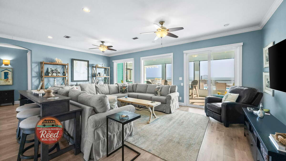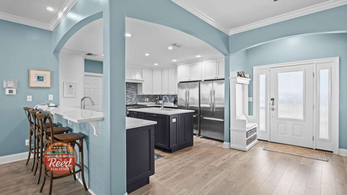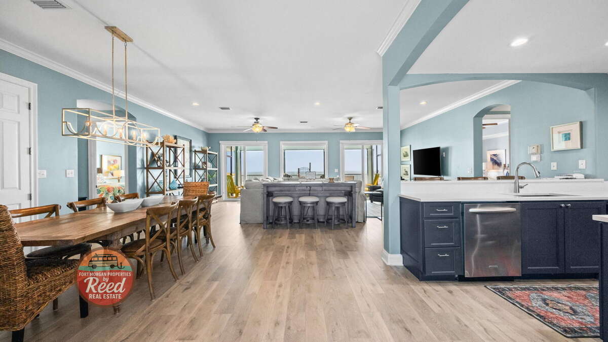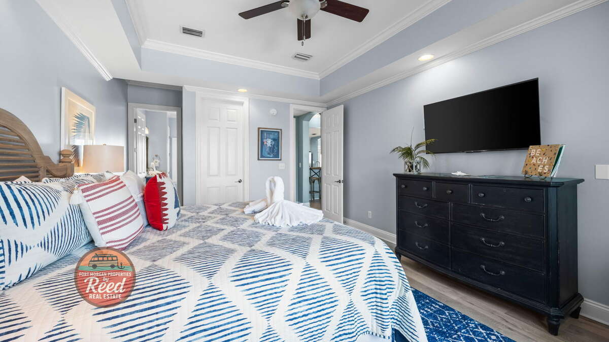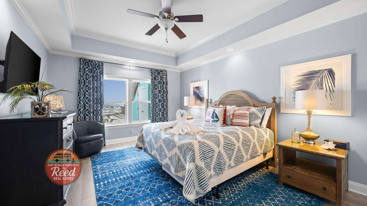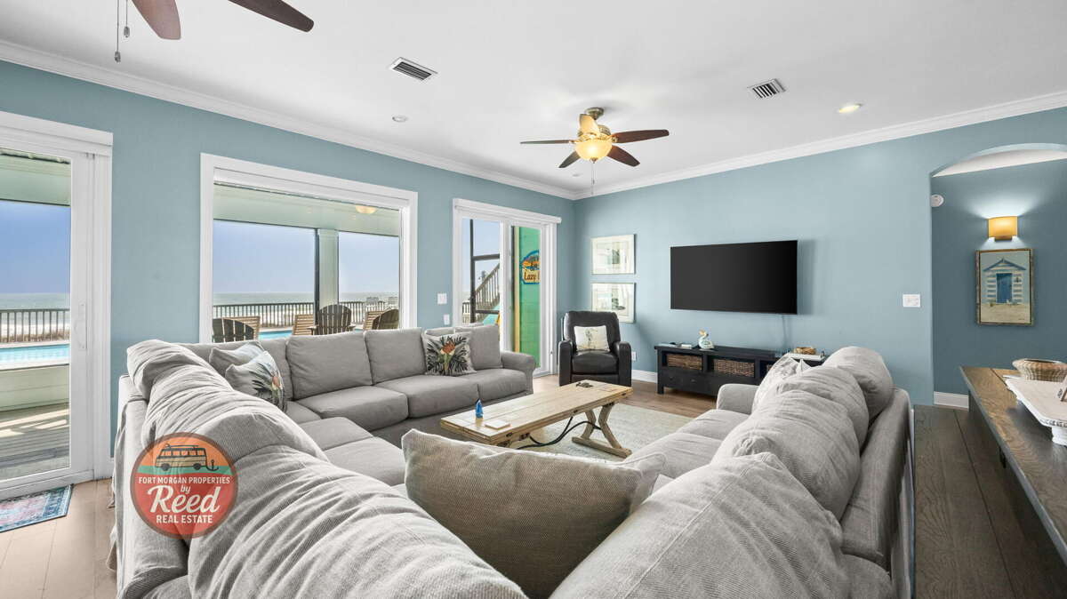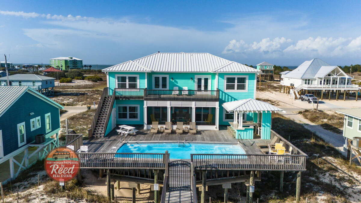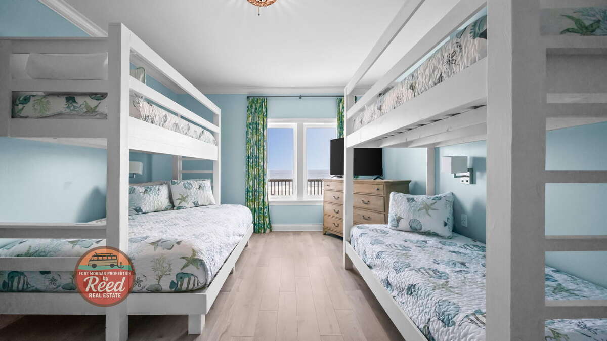 Saturday-to-Saturday rentals during peak season. Pool heating available seasonally (not offered Memorial Day – Labor Day). This property is not pet friendly. Must be 25+ to book. Welcome to Lazy Parrot, a luxurious 5-bedroom, 5.5-bath Gulf-front retreat designed for families and large groups seeking both comfort and sophistication. With over 4,000 sq. ft. of living space, four king master suites with stunning Gulf views, and a private pool just steps from the beach, this home offers the ultimate Fort Morgan escape. Bedrooms by Level: Level 1: Bedroom 1 (Master): King bed, private bath, TV, Gulf-front Bedroom 2: King bed, private bath, TV, Gulf-front Level 2: Bedroom 3: King bed, private bath, TV, Gulf-front Bedroom 4: Queen bed, private bath, TV, Gulf-front Bedroom 5 (Bunkroom): Sleeps up to 5, private bath, TV Home Highlights: Gulf-front location with direct beach access Private pool with seasonal heating available Four king master suites facing the Gulf Bunkroom that sleeps up to five guests Spacious loft with additional sleeping area Expansive decks with plenty of seating and panoramic Gulf views Open-concept living, dining, and kitchen areas ideal for entertaining Fully equipped kitchen with modern appliances and oversized island Five en-suite bathrooms plus an additional half bath Washer/dryer included for guest use Sleeps up to 15 guests comfortably Why You’ll Love It: Lazy Parrot combines elegance and coastal charm with plenty of room for everyone to unwind. Wake up to breathtaking Gulf views from each of the four master suites, spend the day soaking up the sun by your private pool, and gather at night for dinner on the deck as the waves roll in. With luxurious finishes, thoughtful design, and unbeatable beachfront access, Lazy Parrot promises the perfect setting for your next unforgettable beach getaway.