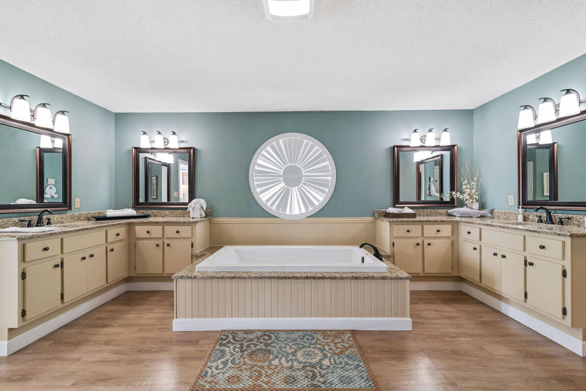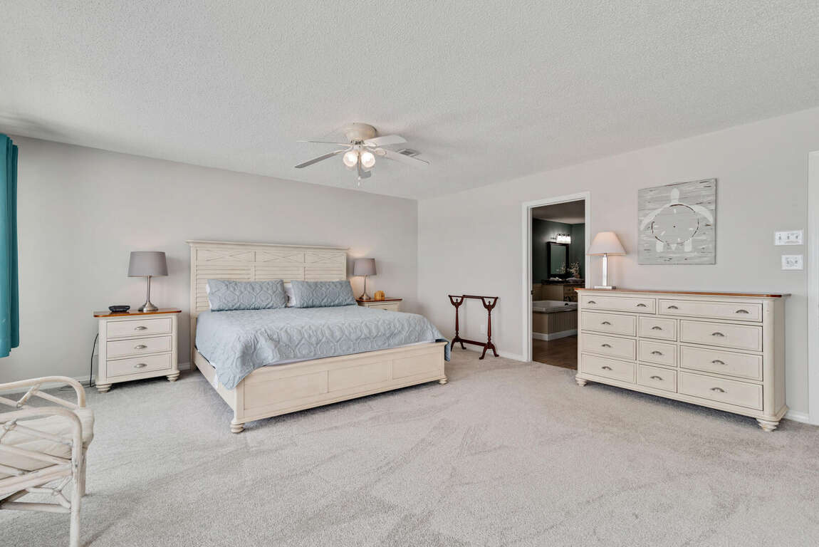 Exuding opulence and sophistication, the master bedroom of this Gulf Shores vacation home epitomizes luxury living with its unparalleled amenities and breathtaking views. The master bedroom design seamlessly blends comfort and elegance, featuring a spacious layout that includes a cozy sitting area for relaxation. Guests can indulge in the ultimate pampering experience in the spa-like private bathroom attached to the master bedroom, providing a serene retreat within the home. Additionally, the crowning jewel of the master bedroom is the ocean view balcony, where one can wake up to stunning vistas of the Gulf shores and unwind with the soothing sound of the waves. This meticulously designed space offers a perfect fusion of style, comfort, and natural beauty for a truly memorable stay.
