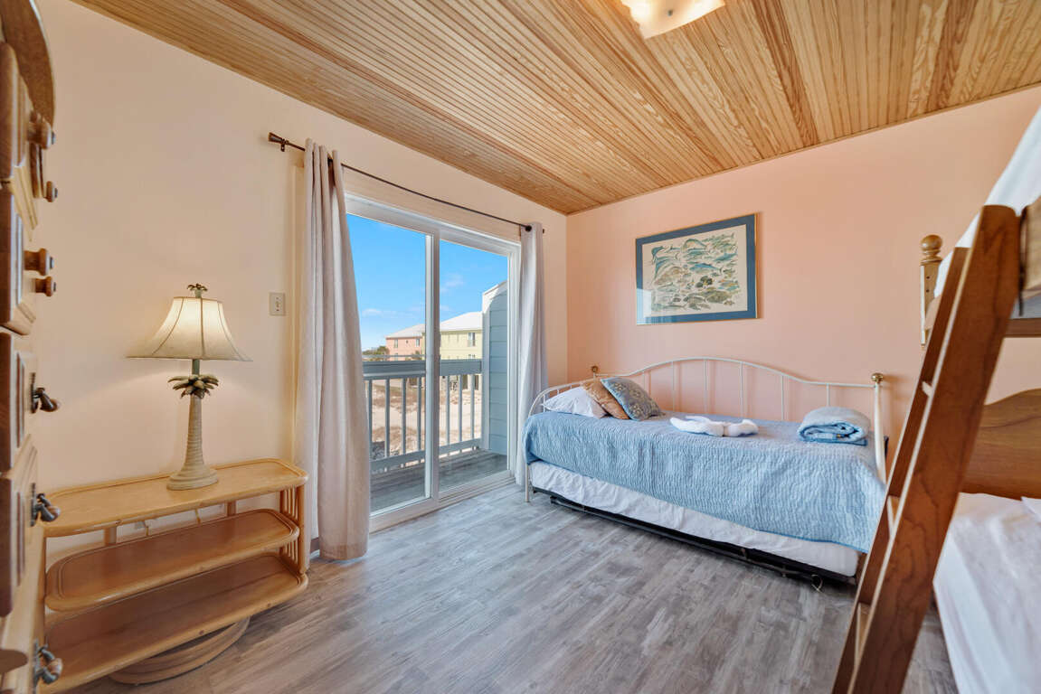 The layout of the charming 2-bedroom townhouse in Gulf Shores, Alabama, offers a harmonious blend of comfort and functionality, making it an ideal retreat for families seeking a waterfront getaway. The master bedroom boasts a thoughtfully designed layout, providing a cozy sanctuary for relaxation. A standout feature is the private balcony attached to the master bedroom, offering stunning views and a serene space to unwind. Families can enjoy this intimate setting, perfect for morning coffees or evening sunsets. The townhouse's design emphasizes a seamless flow between indoor and outdoor living spaces, ensuring a pleasurable stay for guests looking to experience the beauty of Gulf Shores.