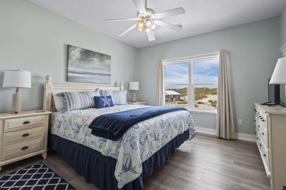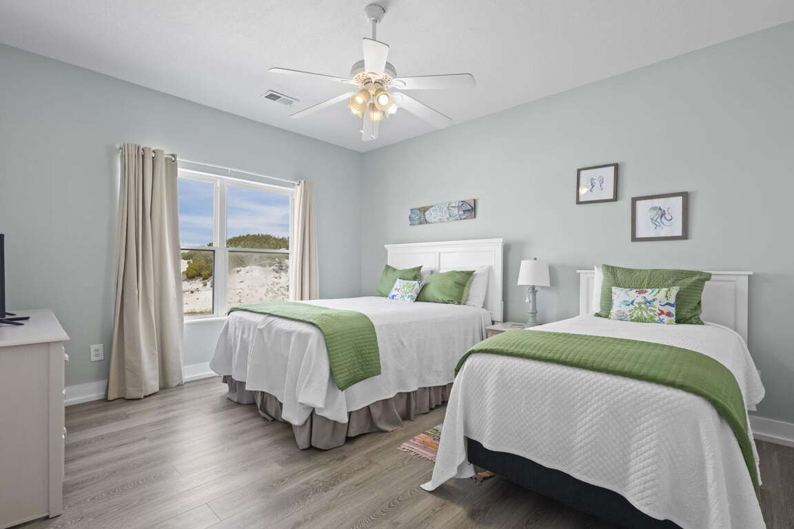 Situated on the Gulf Front with stunning views, the Happy Days Beach House is a spacious 6-bedroom, 6-bathroom vacation home offering three levels of luxury living space, multiple decks, and a private swimming pool. The room layouts are carefully designed to provide comfort and convenience for guests, with each bedroom offering unique Gulf views that create a serene and relaxing atmosphere. Whether you are enjoying your morning coffee on one of the decks or taking a dip in the private swimming pool, the Gulf views surrounding the property will surely captivate you. The layout of the house guarantees that everyone has their own space to unwind and enjoy the beauty of the Gulf Coast.