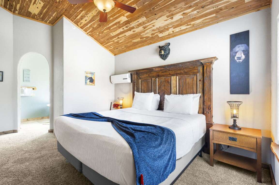 Comfort and versatility define the bedroom layout of this luxurious waterfront home at Table Rock Lake. Tailored for diverse sleeping arrangements, the property features five distinct bedrooms and a charming bunk room, accommodating up to 16 guests. Each of the two master king ensuites, located on the upper level, offers private bathrooms with clawfoot tubs, ensuring both comfort and bedroom privacy. On the main level, two full beds provide cozy options, while the lower level features a queen bed and an additional full bed for flexible sleeping arrangements. The bunk room, equipped with twin bunks, is perfect for children or young adults, creating a welcoming atmosphere for family gatherings and group retreats, all while maintaining a sense of personal space.