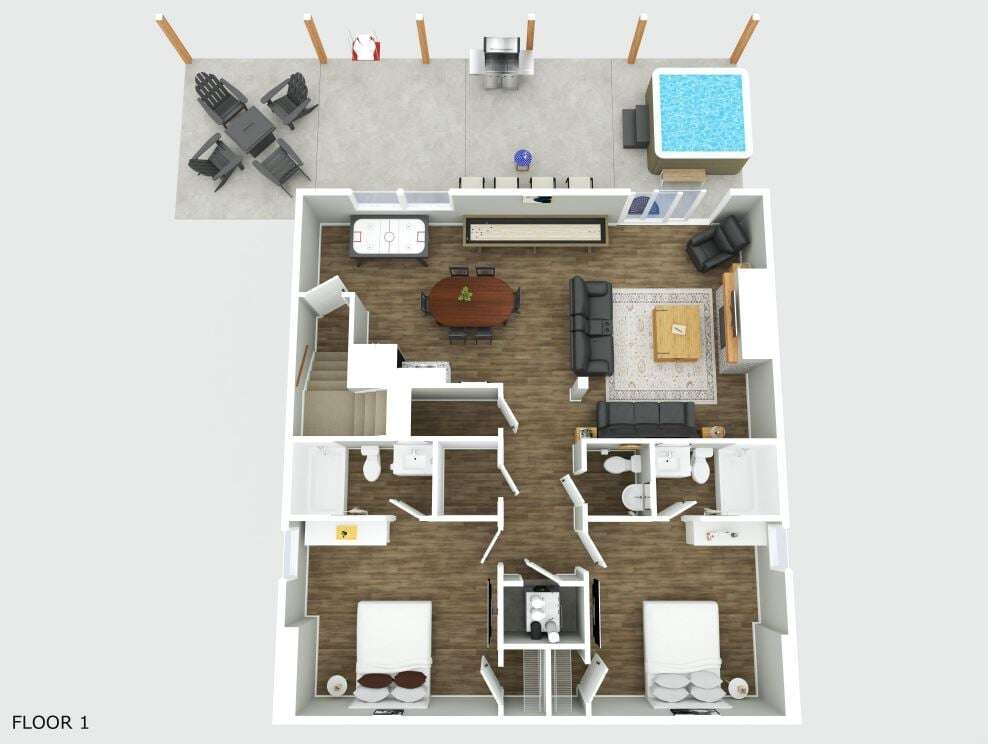 Guests at "Drifting At Table Rock" can expect a memorable experience characterized by a blend of comfort and entertainment tailored to all ages. The property emphasizes guest comfort with thoughtfully designed spaces, including a cozy living area featuring a fireplace and a fully-equipped kitchen perfect for family gatherings. Outdoor amenities, such as pool access just steps away, invite relaxation and fun. Families can indulge in a variety of activities, with games for teens and toys for toddlers ensuring everyone finds something enjoyable. The treehouse playground and arcade area provide additional options for recreation, making it an ideal destination for unforgettable family bonding. Whether lounging by the pool or engaging in lively games, every moment is crafted for lasting memories.