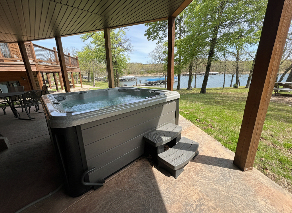 24Hr Check-In, Enhanced Cleaning Practices, Cleaning Disinfection, Self Check In / Check Out, High-touch surfaces cleaned with disinfectant, Fire Extinguisher, Smoke Detector, Deadbolt Lock, Outdoor Lighting, Emergency Exit Route, Emergency Medical Contact, Emergency Police Contact, Emergency Fire Contact, Game Table, Heating, Shampoo, Essentials, Private Entrance, Self Check-In, Keypad, Conditioner, Body Soap, Hot Air Ballooning, Parasailing, Kayaking, Watersports nearby, Fishing nearby, Tennis courts nearby, Golf course within 30 min drive, Family, Autumn Foliage, Botanical Garden, Marina, Museums, Theme Parks, Water Parks, Winery Tours, Zoo, Health Beauty Spa, Antiquing, Bird Watching, Horseback Riding, Outlet Shopping, Bowling, Boating, Miniature Golf, Shopping, Water Sports, Wildlife Viewing, Horse riding nearby, Outdoor Playground, Fire Pit Shared, Volley Ball Court, Lake view, Lake Front, Boat Slip, Outdoor Games, Custom Made Gift Basket with items you requestReeled Inn Lodge in Branson, MO, is a luxurious 7-bedroom vacation rental, perfect for family gatherings or reunions. Situated on the serene shores of Table Rock Lake, this elegant retreat accommodates up to 16 guests. Enjoy direct lake access for swimming and fishing, along with a fully equipped kitchen, cozy living room with a fireplace, and spacious dining area. The lodge features entertainment amenities like a pool table and a private hot tub. With numerous community and outdoor activities available, this destination fosters lasting memories. Discover the myriad highlights that make this getaway truly special.