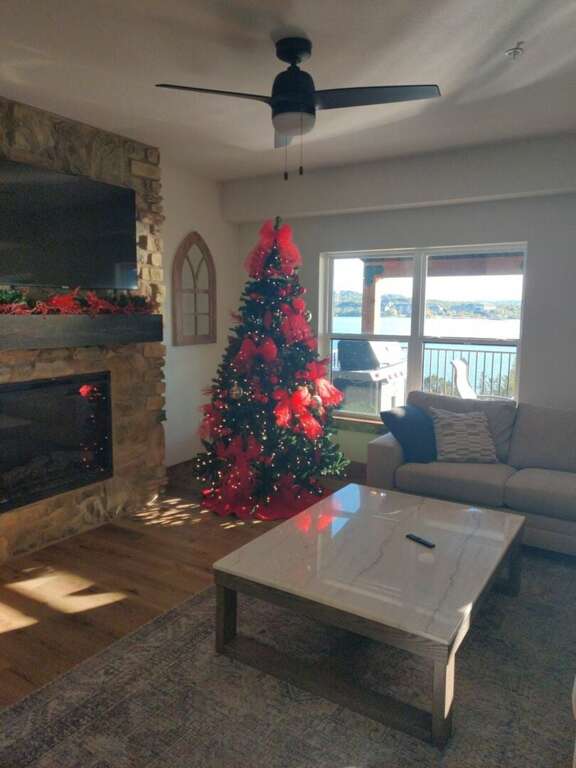 24Hr Check-In, Enhanced Cleaning Practices, Cleaning Disinfection, Self Check In / Check Out, High-touch surfaces cleaned with disinfectant, Fire Extinguisher, Smoke Detector, Deadbolt Lock, Outdoor Lighting, Emergency Exit Route, Emergency Medical Contact, Emergency Police Contact, Emergency Fire Contact, Game Table, Arcade Games, Heating, Shampoo, Essentials, Private Entrance, Self Check-In, Keypad, Conditioner, Body Soap, Hot Air Ballooning, Parasailing, Kayaking, Watersports nearby, Fishing nearby, Golf course within 30 min drive, Family, Autumn Foliage, Botanical Garden, Marina, Museums, Theme Parks, Water Parks, Winery Tours, Zoo, Health Beauty Spa, Antiquing, Bird Watching, Horseback Riding, Outlet Shopping, Bowling, Boating, Miniature Golf, Shopping, Water Sports, Wildlife Viewing, Horse riding nearby, Lake view, Custom Made Gift Basket with items you requestRevitalize Retreat is an exquisite 7-bedroom short-term rental situated at Rocky Shores Resort, offering stunning views of Table Rock Lake. Accommodating up to 25 guests, it's ideal for family reunions or group vacations. The property features luxurious king ensuites, bunk beds for kids, and spacious common areas. Guests can enjoy outdoor amenities like a grill, hot tub, and expansive decks perfect for relaxation. Nearby, water sports and Branson attractions provide endless activities. With a focus on cleanliness and guest comfort, this retreat promises a memorable stay. Uncover the unique features that make this getaway truly special.