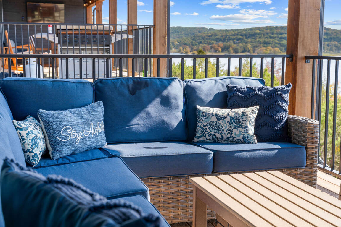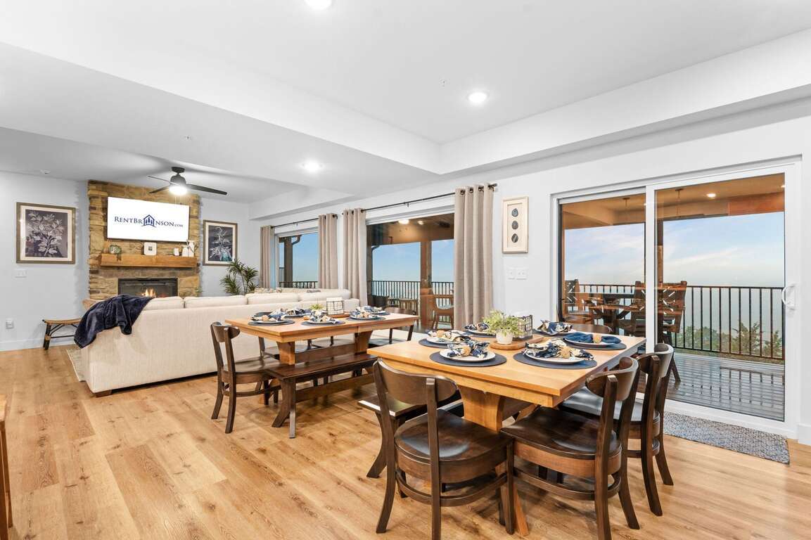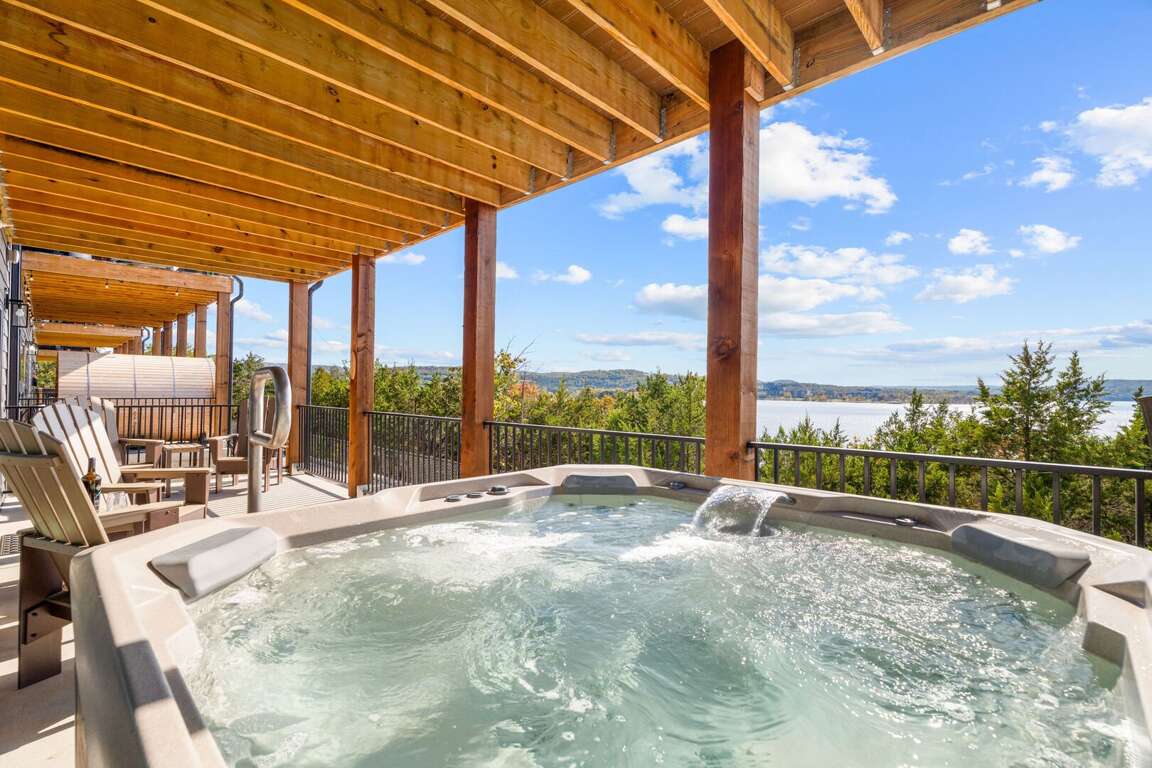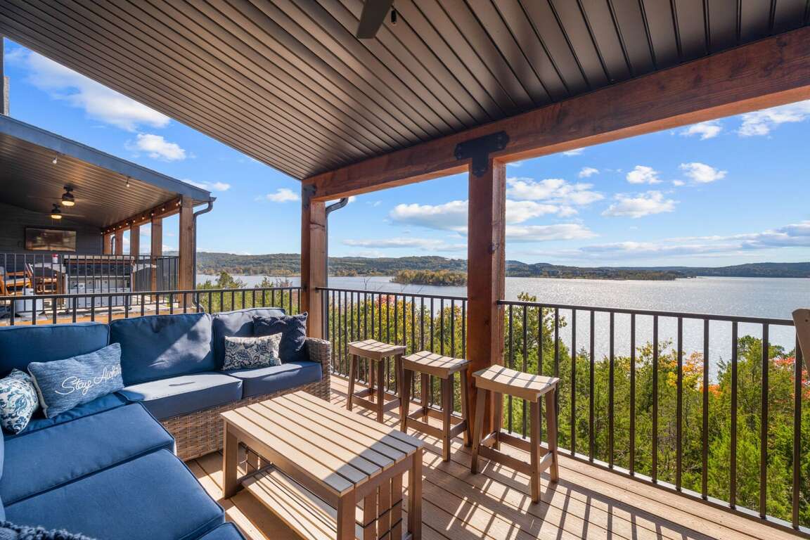 As guests arrive at Over The Top, they are immediately captivated by the unobstructed views of Table Rock Lake that greet them from the entrance. The scenic features of this luxurious accommodation provide an ideal backdrop for lakefront relaxation, inviting guests to unwind amid nature's beauty.