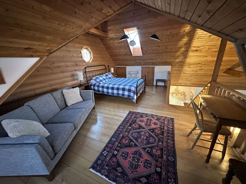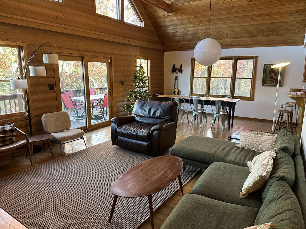 Accommodating up to 11 guests, the sleeping arrangements in this modern log cabin rental are thoughtfully designed to provide comfort and privacy. The main level features a master bedroom with a king bed and an ensuite bathroom, ensuring a luxurious retreat. On the lower level, guests will find a queen bedroom alongside a twin bunk bed with a trundle, ideal for families or groups. The upper level boasts an open loft with a queen bed and a desk area, perfect for remote work or relaxation. For added flexibility, a queen air mattress is available, enhancing the variety of bedding options. With these carefully arranged sleeping spaces, Buffalo Bluff promises a restful stay for all guests, regardless of their needs.