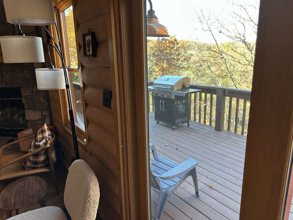 Buffalo Bluff, a 3-bedroom rental house in Lampe, MO featuring a fireplace, air conditioning, and a private hot tub. Pets are allowed and a variety of activities await nearby.