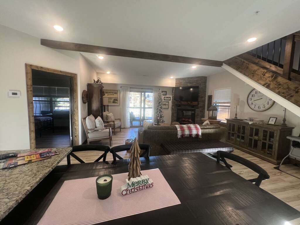This beautiful cabin is the ideal retreat for comfort and connection located at Tall Timbers Camp! Wake up refreshed with a warm cup of coffee on the covered deck in the morning breeze and finish your day with a soothing soak in your private hot tub under a sky full of stars. Inside, you’ll find a welcoming living area with a stone fireplace, comfortable seating, and a large TV for movie nights together. Enjoy quality family time in the open layout, where rustic wood accents and soft, neutral decor create a calming, home-away-from-home feel. The well-equipped kitchen and nearby dining area make delicious meals easy and enjoyable. Ready for a reset? Head into either of the two luxurious king bedrooms with their own bathrooms on each level or the additional twin beds on the upper level. Don’t miss your chance to experience this cozy retreat!<br />