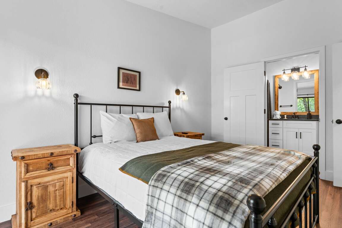 Bedroom 1: Queen Ensuite with a tub/shower combo<br />