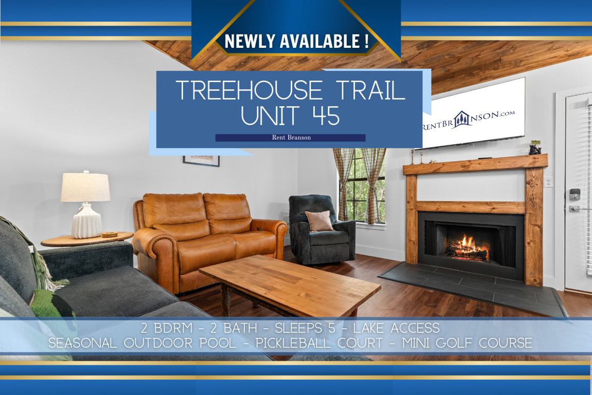 Looking for your next vacation on Table Rock Lake that is nestled in the Ozarks? <strong>Treehouse Trail Unit 45</strong> is located at Ozark Mountain Resort and ready for your next getaway!<br />