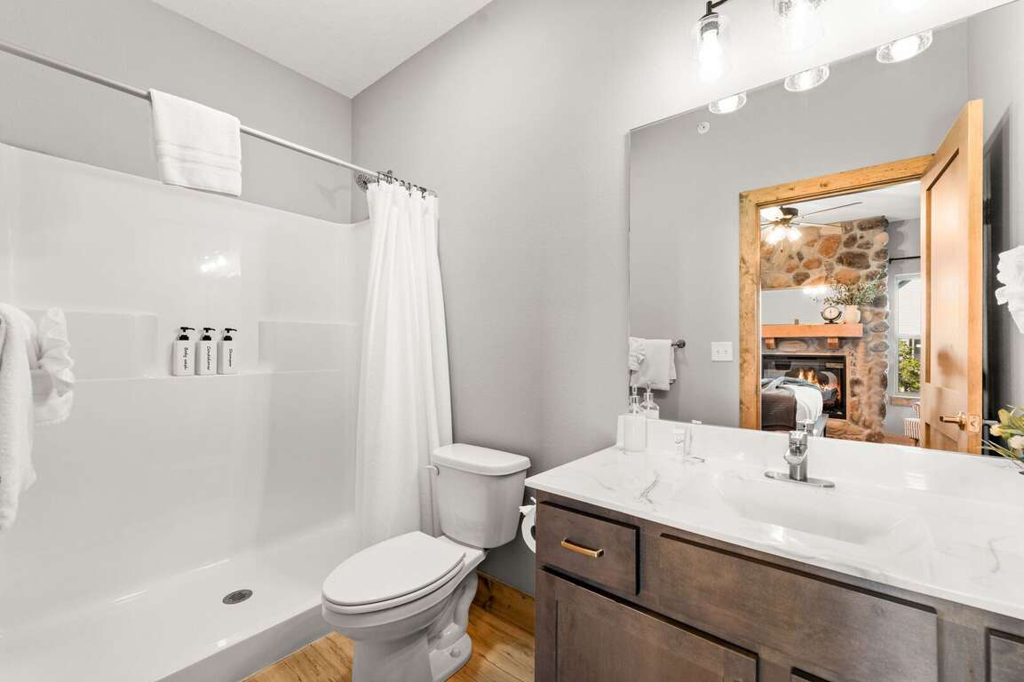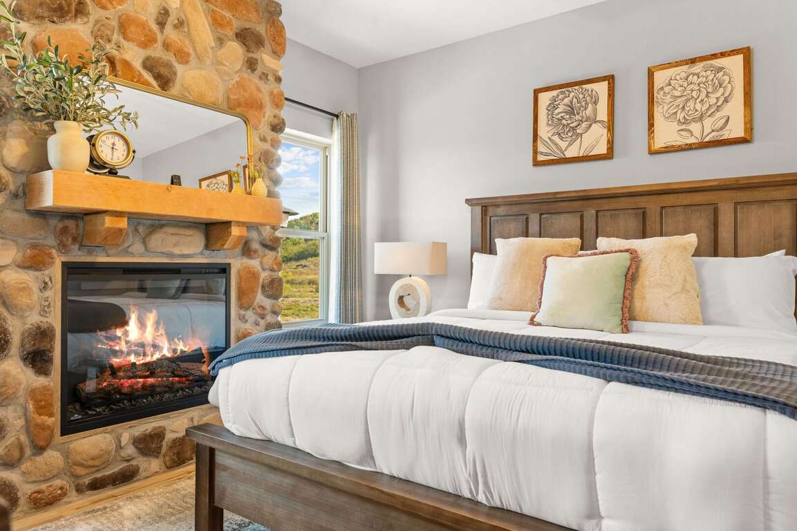 Bedroom 1: King Ensuite with a shower; TV & Stone Fireplace<br />