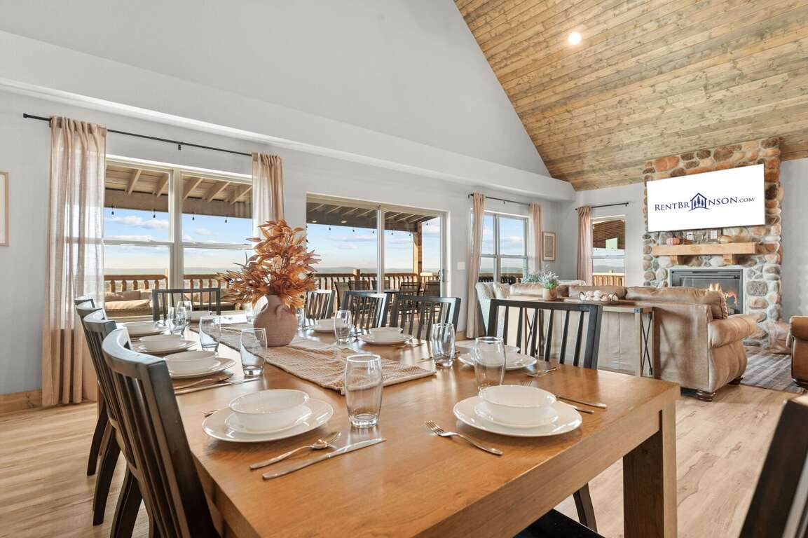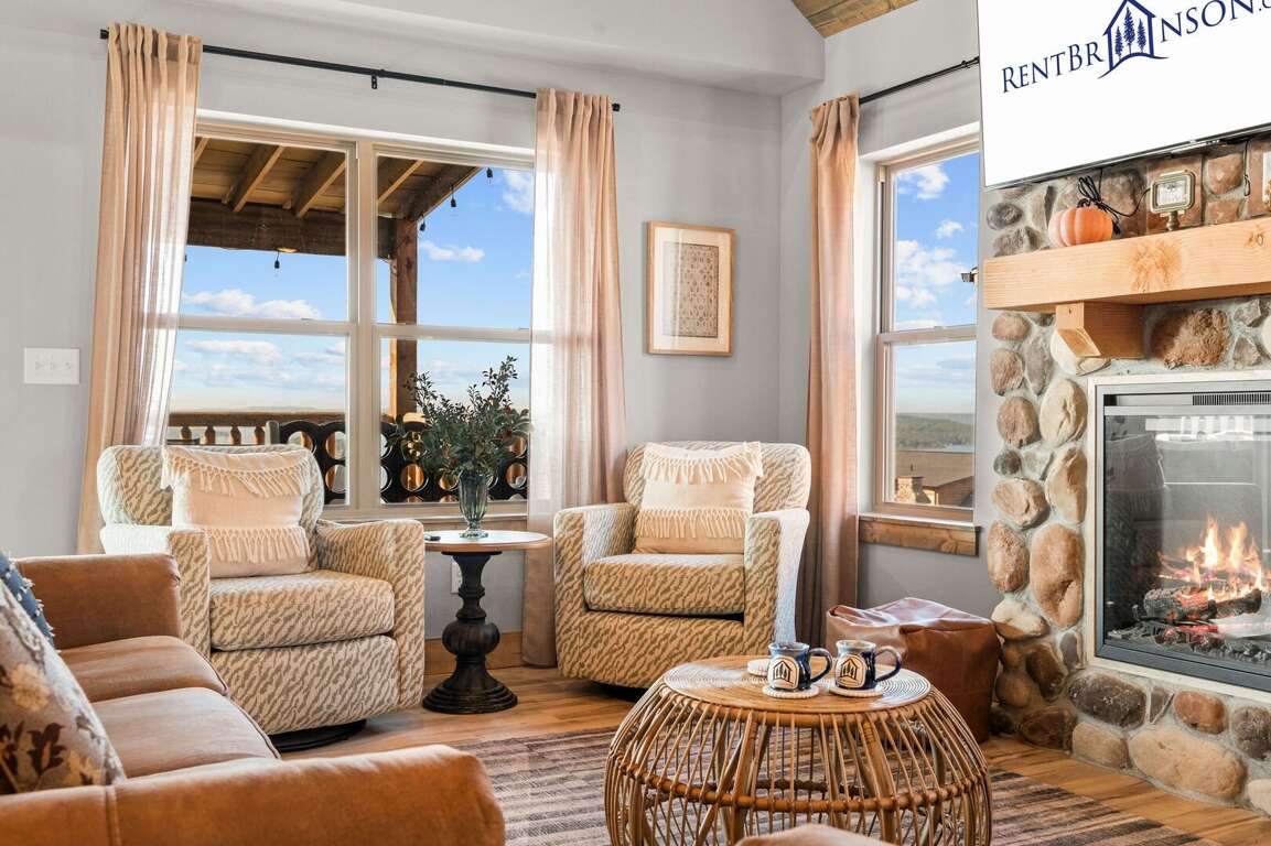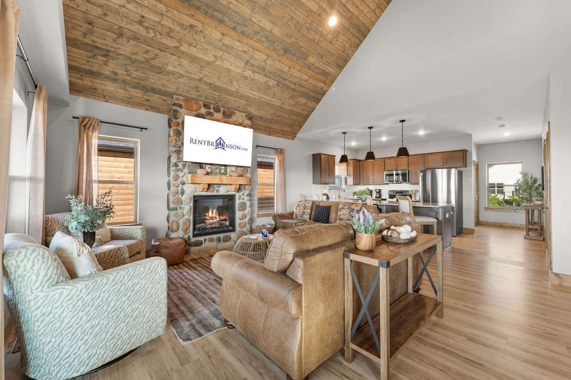 Upstairs, the open-concept living area awaits with a striking stone fireplace and walls of windows framing gorgeous natural light. Just steps away, the fully equipped kitchen offers modern appliances, a large island, and ample seating ideal for preparing meals and gathering with family and friends. Step outside to the expansive deck and soak in the panoramic lake views while lounging around the fire table or sipping cocktails at sunset. An additional king bedroom with a stone fireplace awaits, providing a serene retreat for a restful night's sleep. Whether you're looking for adventure, relaxation, or quality time with loved ones, the <strong>Honey Bear Lodge</strong> at Summer Bay has something for everyone. So why wait? Pack your bags to create memories that'll last a lifetime! FREE tickets valued at $400 daily make your trip unforgettable.<br />