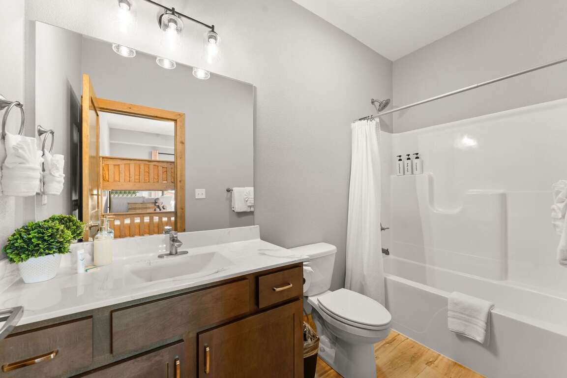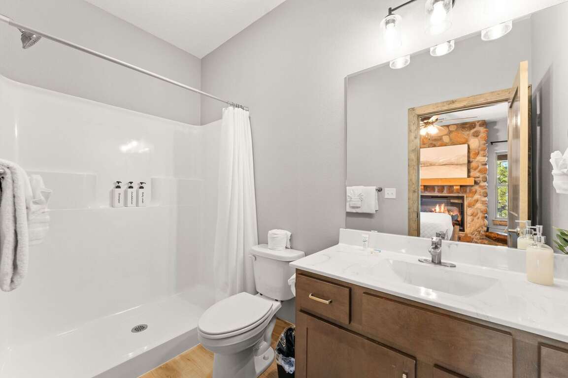 This charming lodge offers the perfect blend of relaxation, entertainment, and natural beauty, making it an ideal destination for families, friends, and couples. As you enter the lodge, you'll discover a game room on the main level that's filled with excitement, featuring multiple arcades, an oversized checkers, and a foosball table to keep everyone entertained for hours. After a fun-filled day, retreat to the comfortable king bed with a stone fireplace, the perfect spot to unwind and enjoy a peaceful night's sleep. Two bunk rooms provide additional sleeping quarters, each with access to a patio where you can fire up the grill and savor a delicious meal or let your worries drift away in the private hot tub under the stars.<br />
