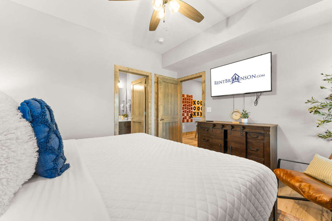 Bedroom 3: Twin over Full Bunk Ensuite with a tub/shower combo; TV & Patio Access<br />