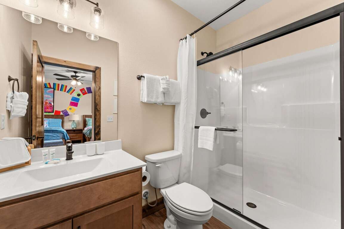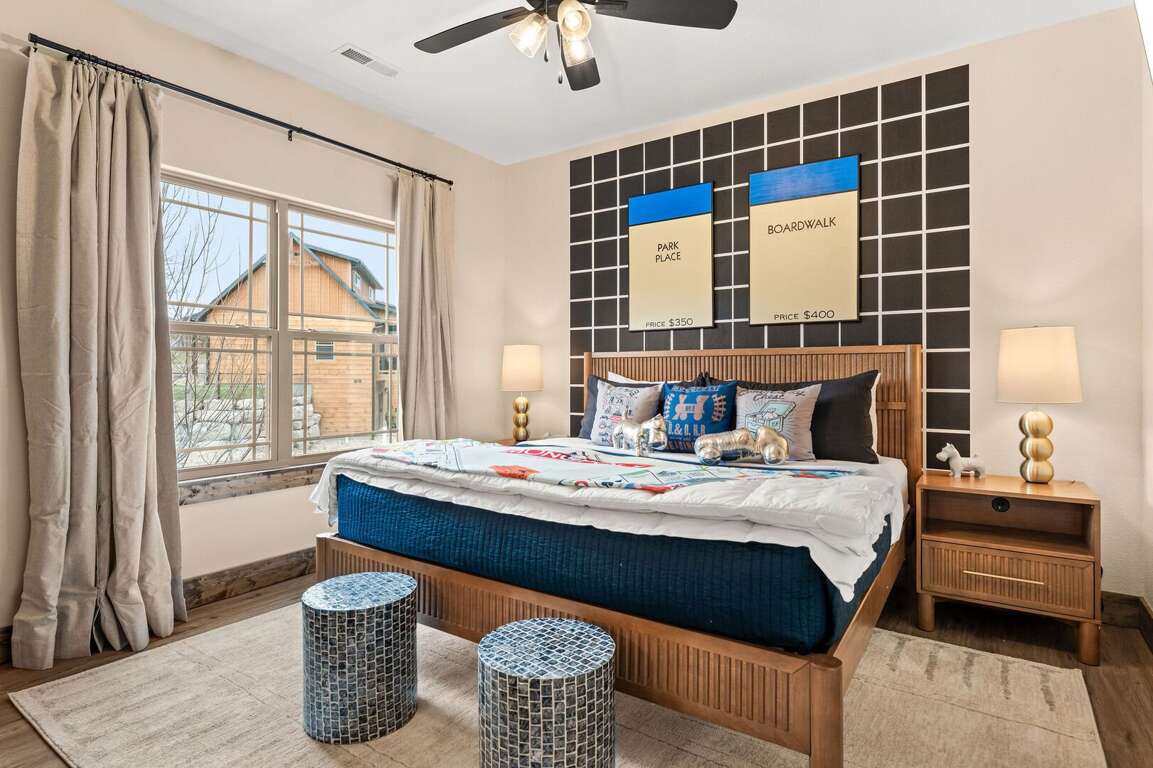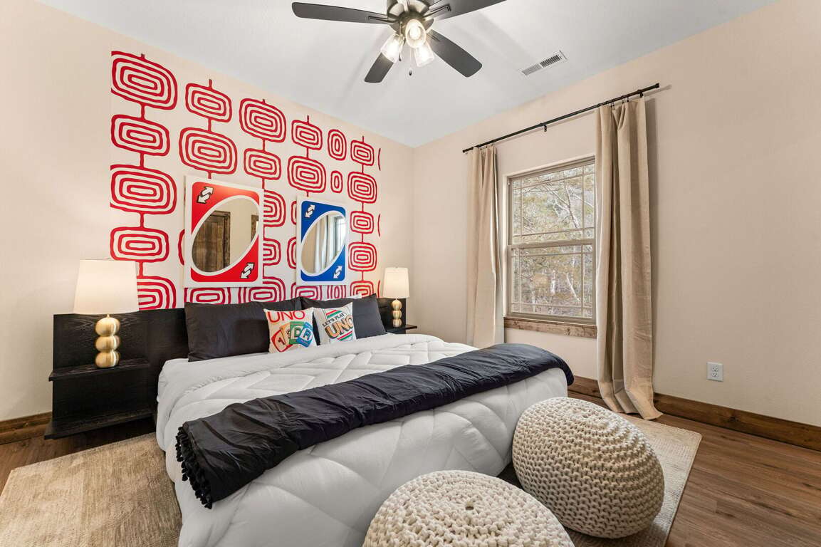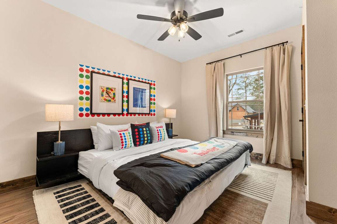 The adventure continues across six total bedrooms, each one meticulously decked out with its own unique game theme. Whether you're landing in a room inspired by vintage classics or modern favorites, every guest gets a one-of-a-kind space to call their own. The fun even spills outdoors onto the massive deck. You can grill up a feast on the gas grill, gather the crew around the firepit table for s'mores, or soak into the private hot tub under the Ozark stars. At <strong>Cabin’Opoly</strong>, you don’t just stay in a house—you play the house. Don't pass "Go" without booking your stay!<br />