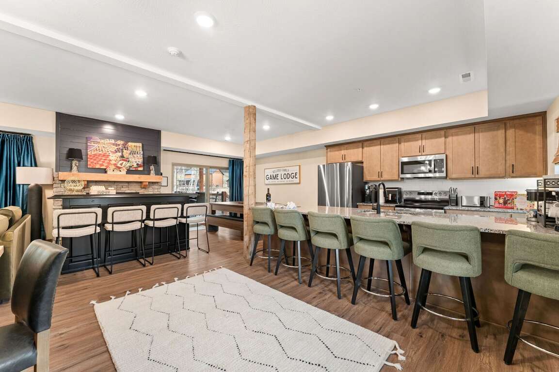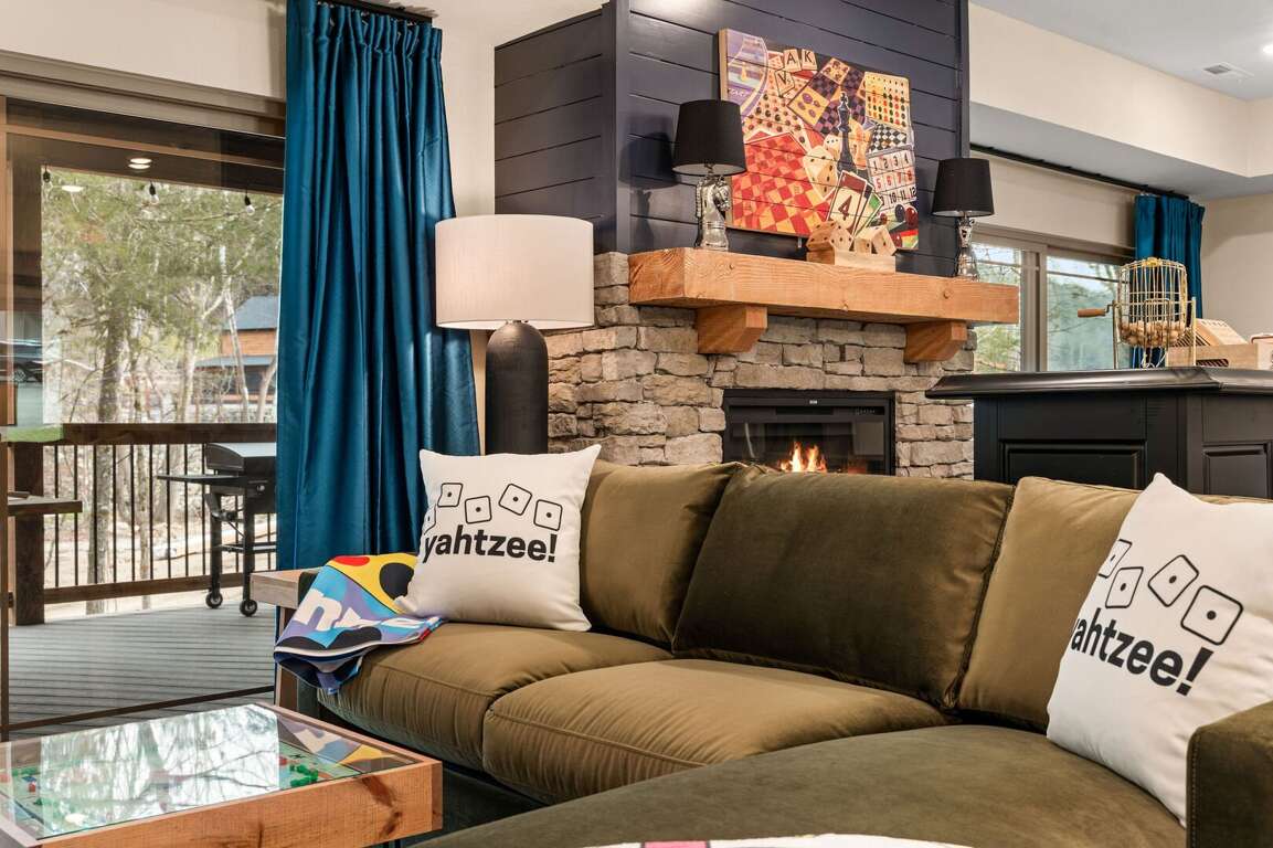 Step inside a life-sized game board at <strong>Cabin’Opoly</strong>, a unique themed retreat in Tall Timbers Camp. This isn't just a place to rest between Branson fun; it’s a fully immersive experience where every room celebrates the nostalgia and thrill of your favorite tabletop classics. From the moment you walk through the door, you’ll find that "boredom" isn't in our vocabulary. The main level serves as the ultimate "Community Chest" of entertainment, featuring a fully equipped kitchen and a wet bar situated right in front of a cozy fireplace—the perfect spot for a post-victory cocktail. The social heart of the home is designed for seamless transitions from dining to doing. Share a family meal at the dining table, then watch the magic happen as it transforms into a high-energy air hockey table for an after-dinner tournament. For those who prefer a calculated strategy, a dedicated poker table sits nearby, while the plush sitting area and TV offer a spot to relax and recharge. <br />