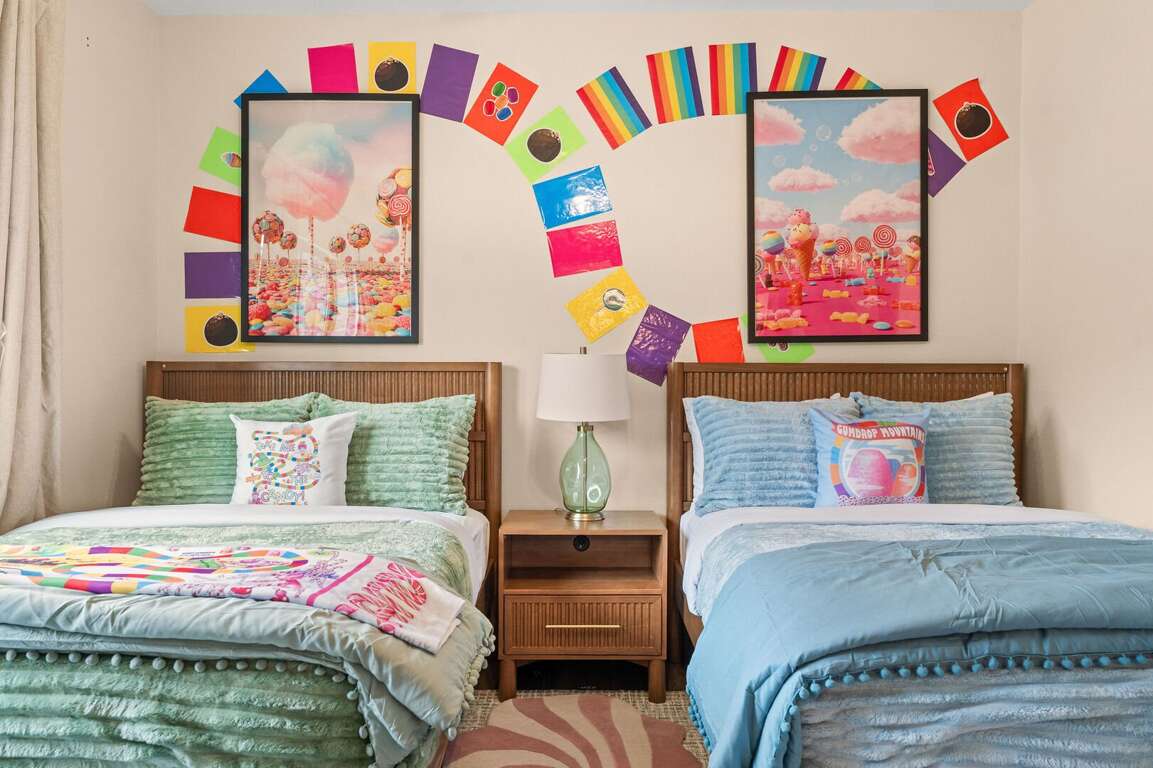 Bedroom 6: Candy Land Room - Two Full Beds Ensuite with a shower; TV<br />