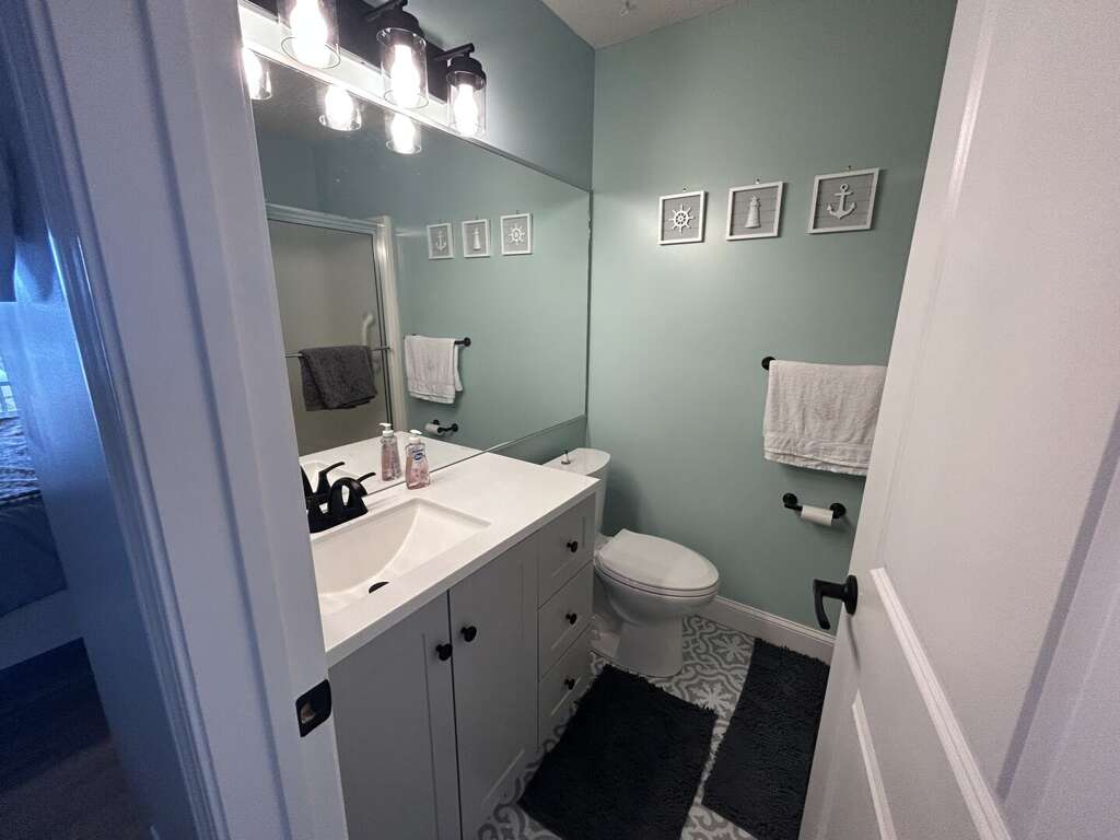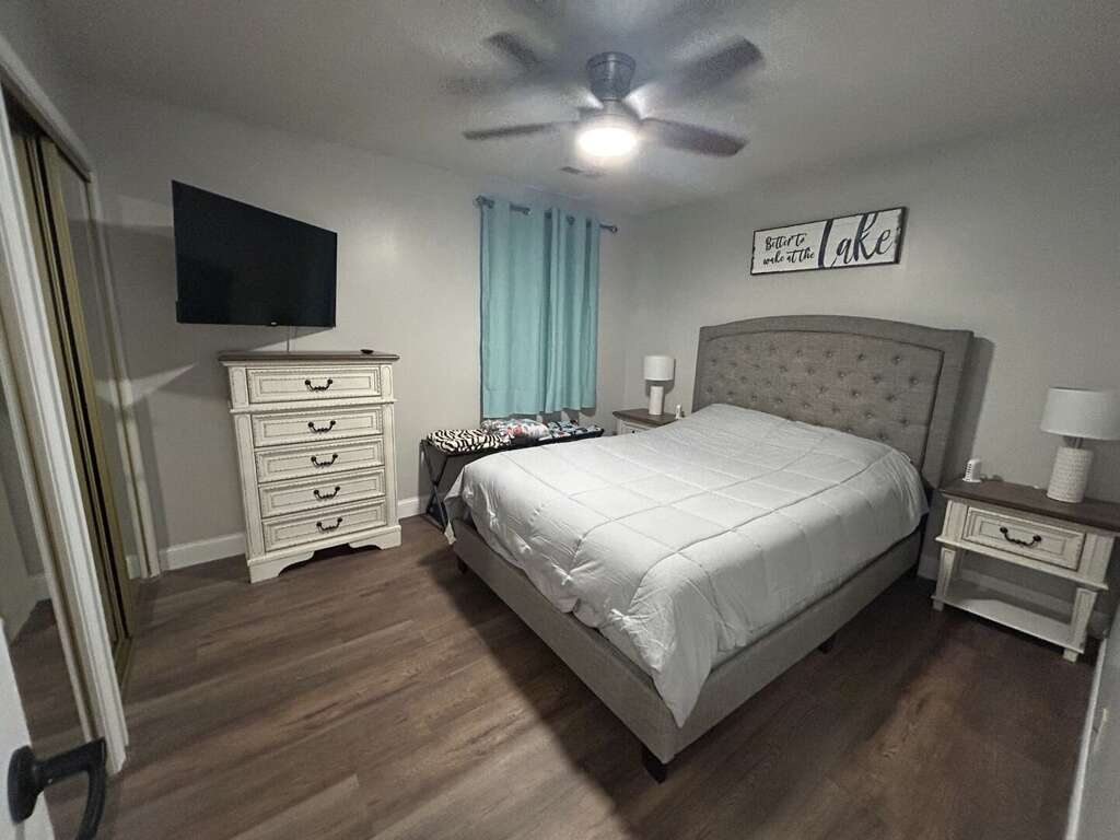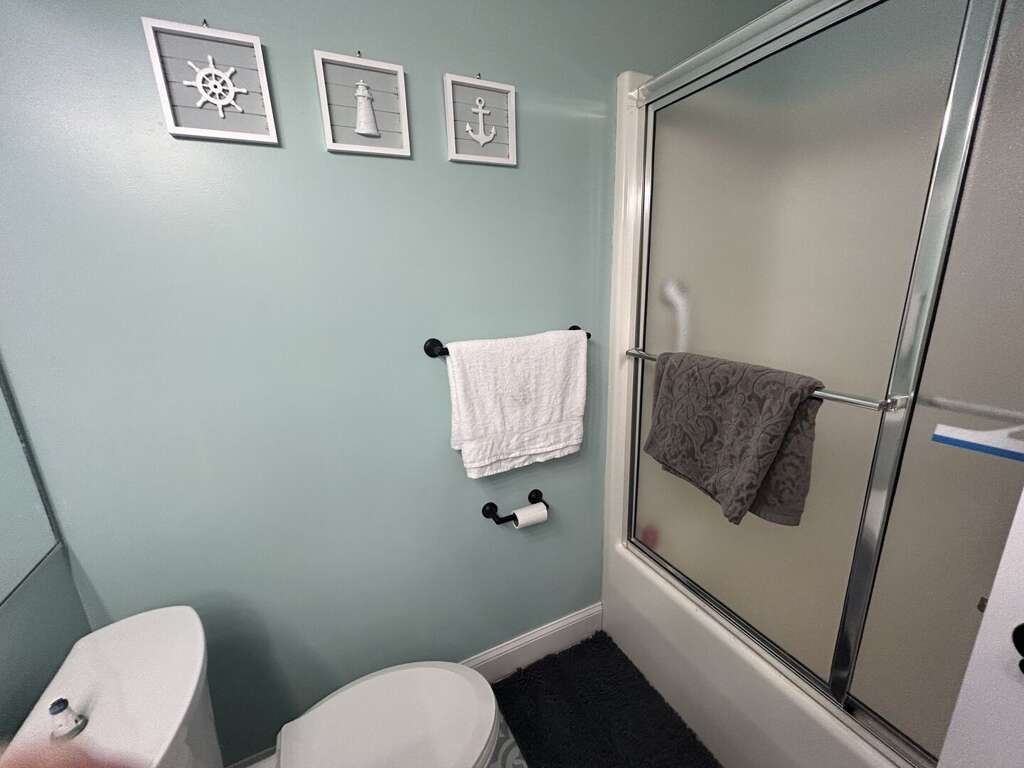 Bedroom 1: Queen with TV & Deck Access; Hall Bath with a shower<br />