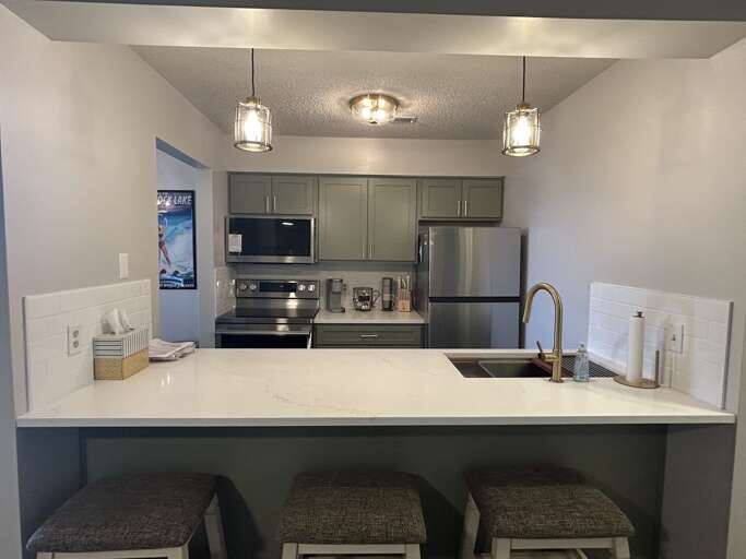 The glittering beauty of Table Rock Lake awaits you at <strong>Silver Maple -- 302</strong>. Wind your way through the Ozark foothills, down Indian Point, and into a stunning lake retreat. Mere minutes from Silver Dollar City and close to Branson, Treehouse Condos are the perfect location. Newly remodeled, <strong>Silver Maple -- 302</strong> has two luxurious bedrooms and two bathrooms. The open-concept main area features new flooring, bar seating, stainless steel appliances, and a dining table to recap each day's memories made. Both bedrooms are equipped with comfortable beds, plush linens, and flat-screen TVs. Your home away from home also offers access to a communal seasonal outdoor pool and an in-house washer and dryer for your use. <strong>Silver Maple -- 302</strong> is waiting for you to begin making memories.<br />