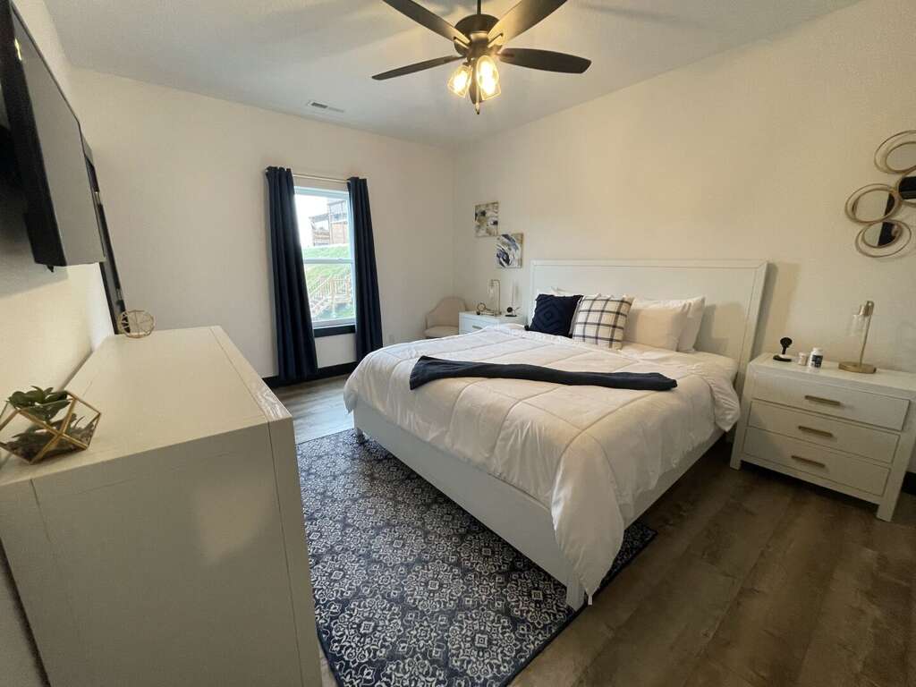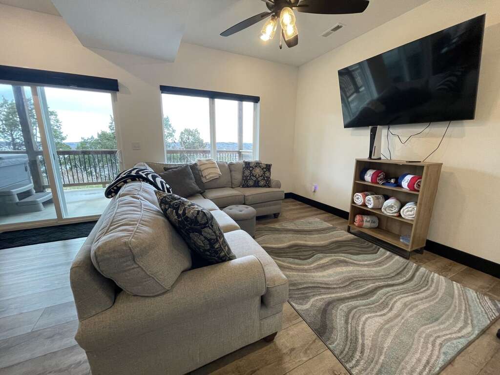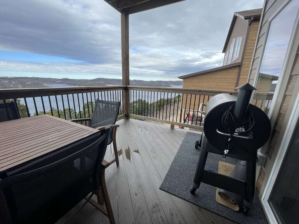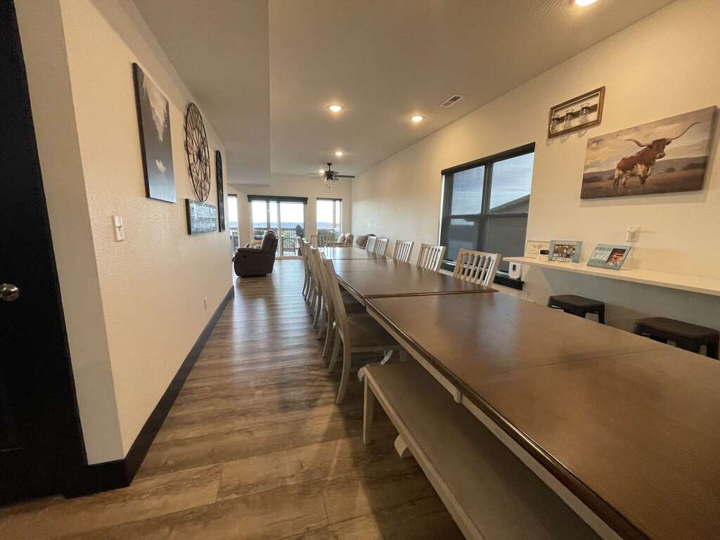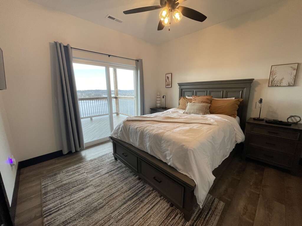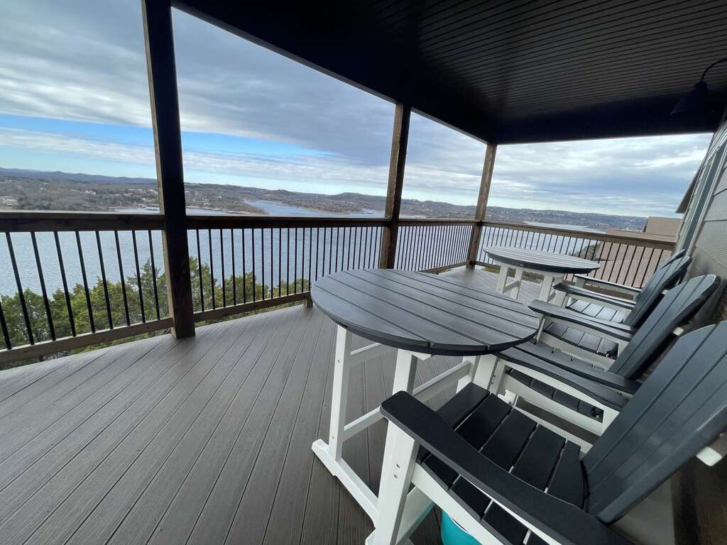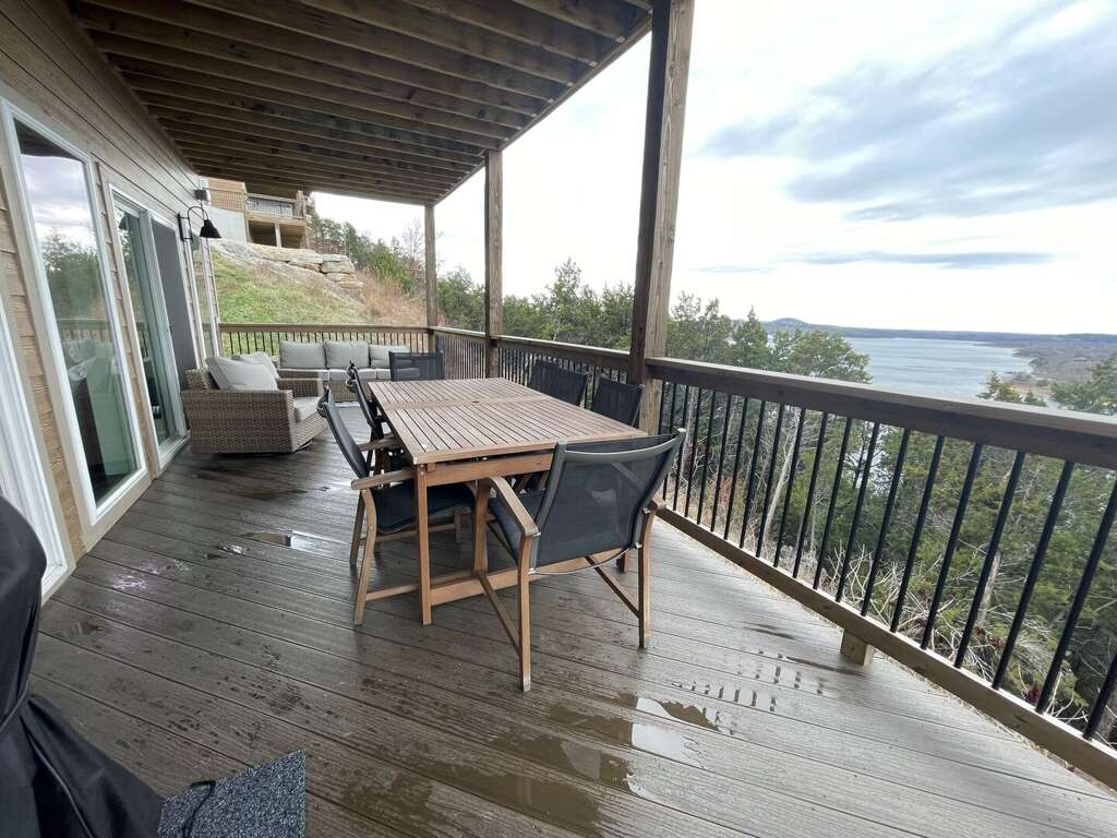The main level features an open-concept living area where you can gather by the fireplace or share stories around the expansive dining table. The fully equipped kitchen is a dream, ready to handle large meals with ease. Step through the sliding doors onto the massive main deck, where you can dine alfresco at the outdoor table or relax in the additional seating area while soaking in the unobstructed views of Table Rock Lake. This level also includes a king bedroom, ideal for guests who prefer to stay close to the main social hub.<br />