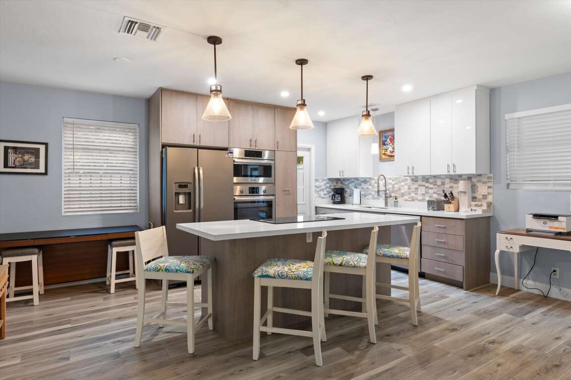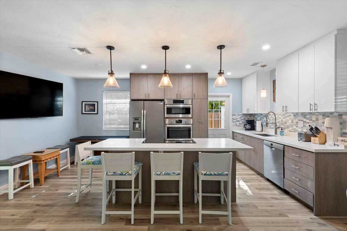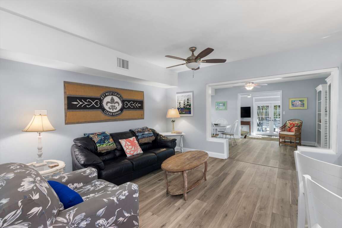 Welcome to Higgs Beach Hideaway, your stylish island home in the heart of Key Wests desirable Casa Marina neighborhood, just minutes from world-famous Higgs Beach and local cafs, waterfront parks, and outdoor activities. This fully renovated tropical retreat blends comfort, convenience, and classic Keys charm perfect for families, couples, or friends looking for a relaxing escape.Step inside to an open-concept living area with plenty of space for gathering, playing games, or lounging after a day in the sunshine. The newly remodeled kitchen is fully equipped with modern appliances and essentials for cooking everything from casual breakfasts to gourmet dinners.The bright solarium invites you to open French doors straight to your private outdoor oasis complete with a sparkling pool, waterfall feature, and plenty of room to soak up the tropical breeze.Whether youre enjoying morning coffee on the patio or unwinding poolside under the palms, this hideaway is your perfect Key West base.** Space DetailsBedrooms Sleeps Up to 8- Primary Bedroom: King bed sweet island sleep with cozy linens.- Second Bedroom: Queen bed comfortable and bright.- Third Bedroom: Two twin beds ideal for kids or friends.- Living Room: Queen sofa sleeper extra bedding for flexibility.** Bathrooms- 2 Full Bathrooms- Stylishly remodeled guest bath with large glass-door shower.- Primary bath adjacent to master suite.** Kitchen & Dining- Fully outfitted kitchen with modern appliances and cookware.- Breakfast nook for casual meals plus a separate dining area for group dinners.** Outdoor & Leisure- Private heated pool with waterfall and lounging deck.- Spacious patio with seating great for sunbathing or al fresco dining.- Outdoor tropical landscaping enhances privacy and island vibes.** Location Highlights- Minutes to Higgs Beach, White Street Pier, Indigenous Park & dining.- Quiet, residential Casa Marina district with shops and cafs close by.** Guest Comfort & Essentials- Air-conditioned throughout.- High-speed Wi-Fi, washer/dryer, iron/board.- Parking for multiple vehicles.** Best forFamilies, friends getaway, remote work stays (long-term comfort), and guests seeking a spacious tropical home near Key Wests beaches and attractions.This home will be a 4 bedroom / 3 bath rental later in 2026!