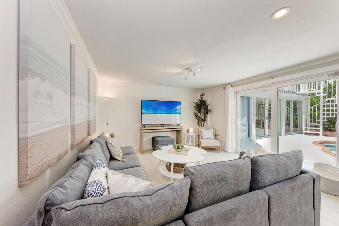 Enjoy *single-story beach house living* in the Main House and first floor of the Villa, with *seamless flow* between the house, private pool and canal front.