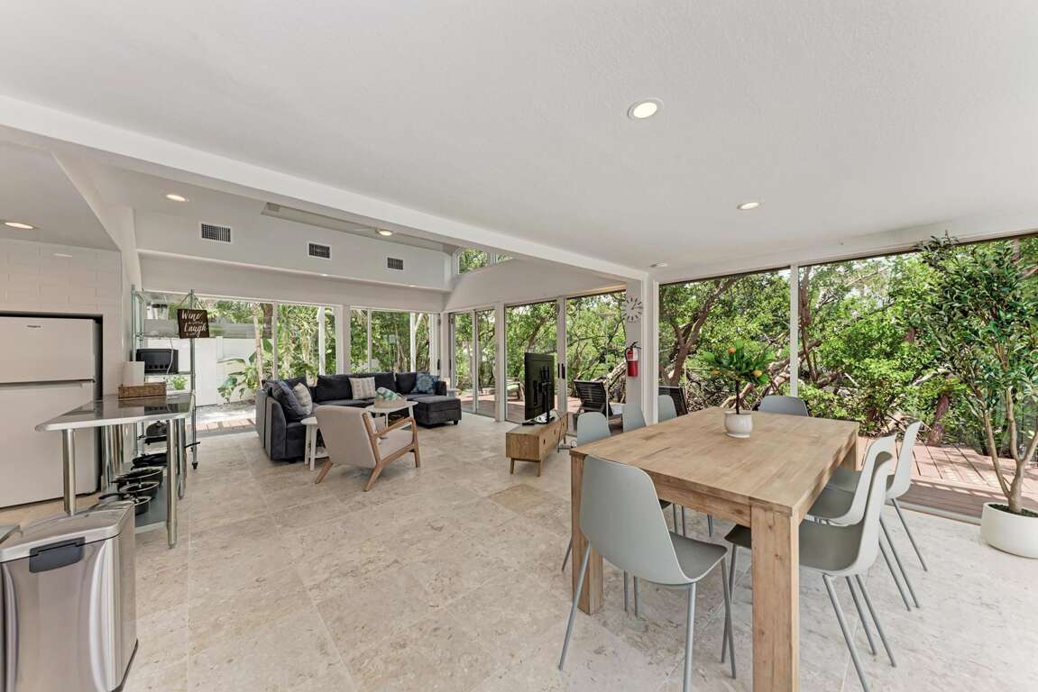 • 2 spacious living areas: Main House and attached Villa (please note there is not much privacy in the Villa since it is surrounded by stunning glass walls, but the mangroves provide natural privacy from the canal; access the Villa by walking 5 steps out of the Main House)