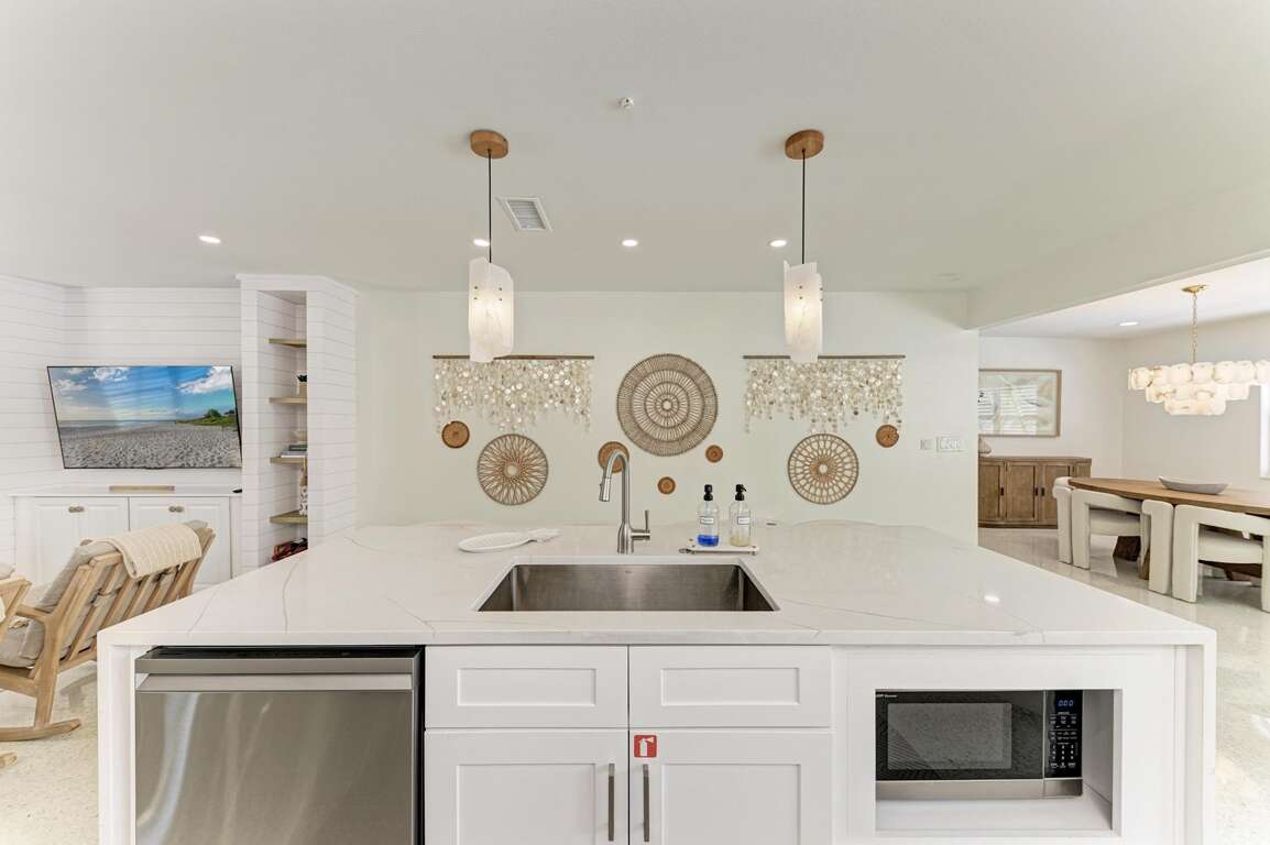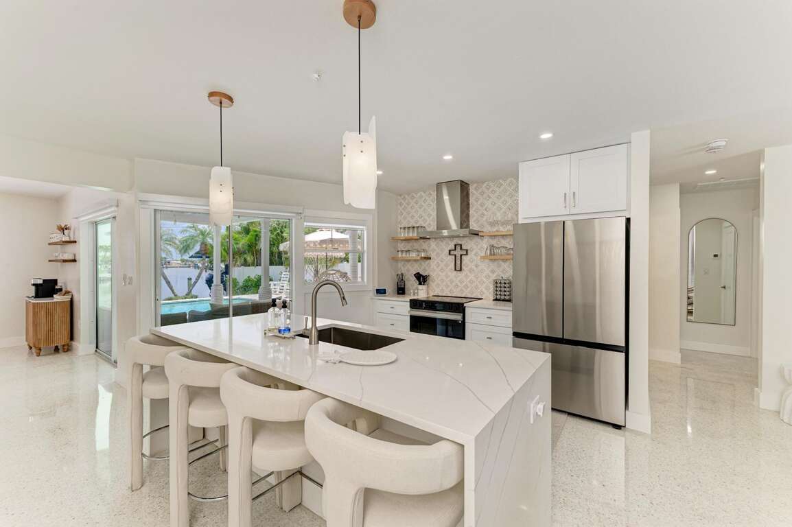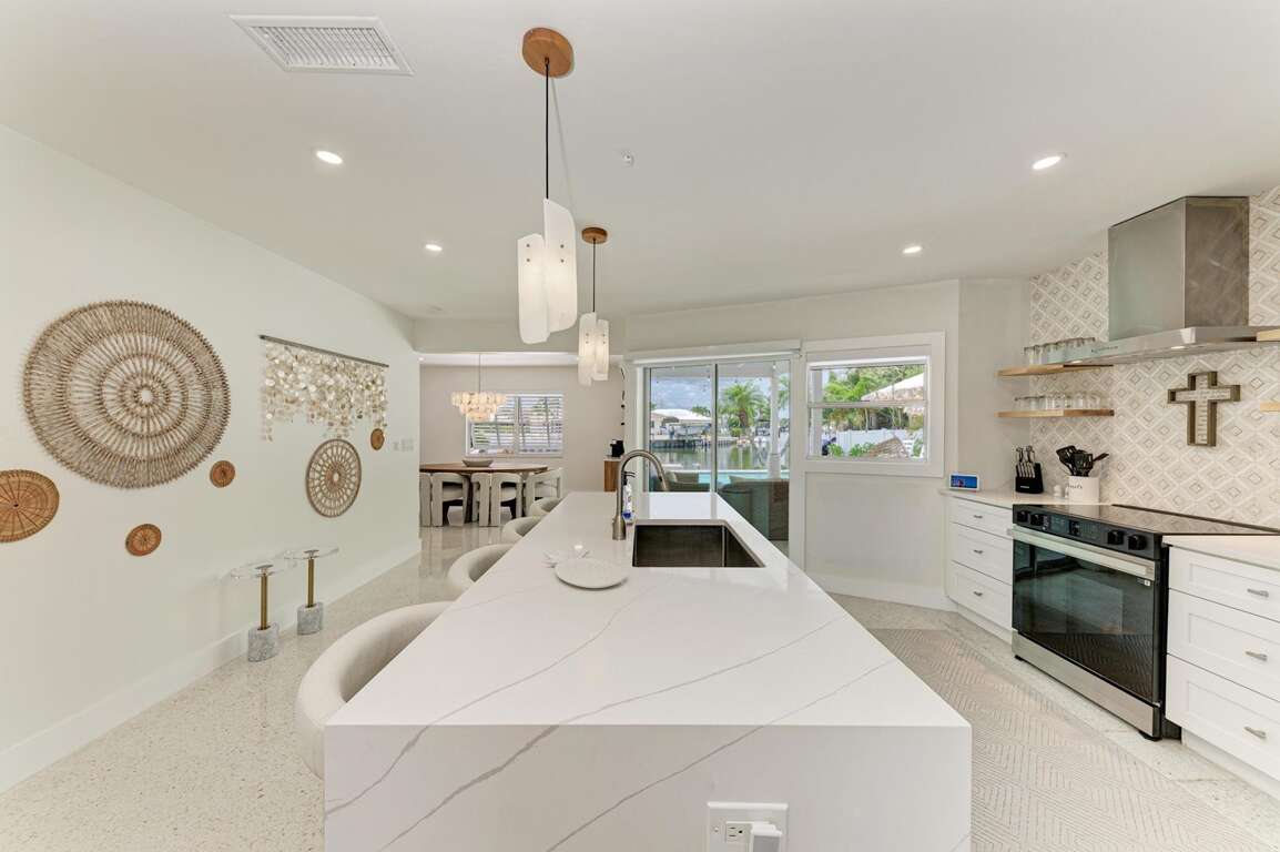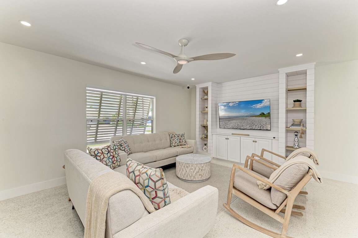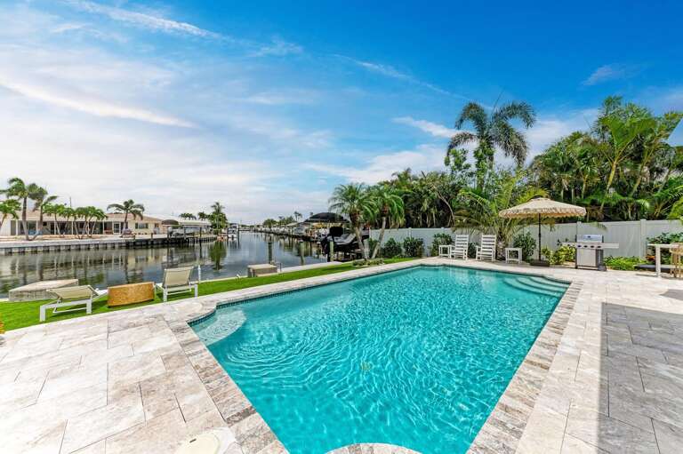 Outdoors, the private pool and patio set the stage for true Florida living. Lounge in the sun, take a refreshing dip, or enjoy evening cocktails as the sky glows over the canal. A private dock extends the experience, perfect for fishing, kayaking, or simply watching for dolphins and manatees as they glide through the water. Guests also have access to two kayaks, making it easy to explore on the water.