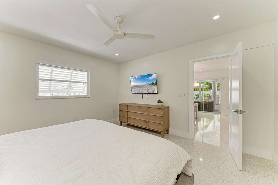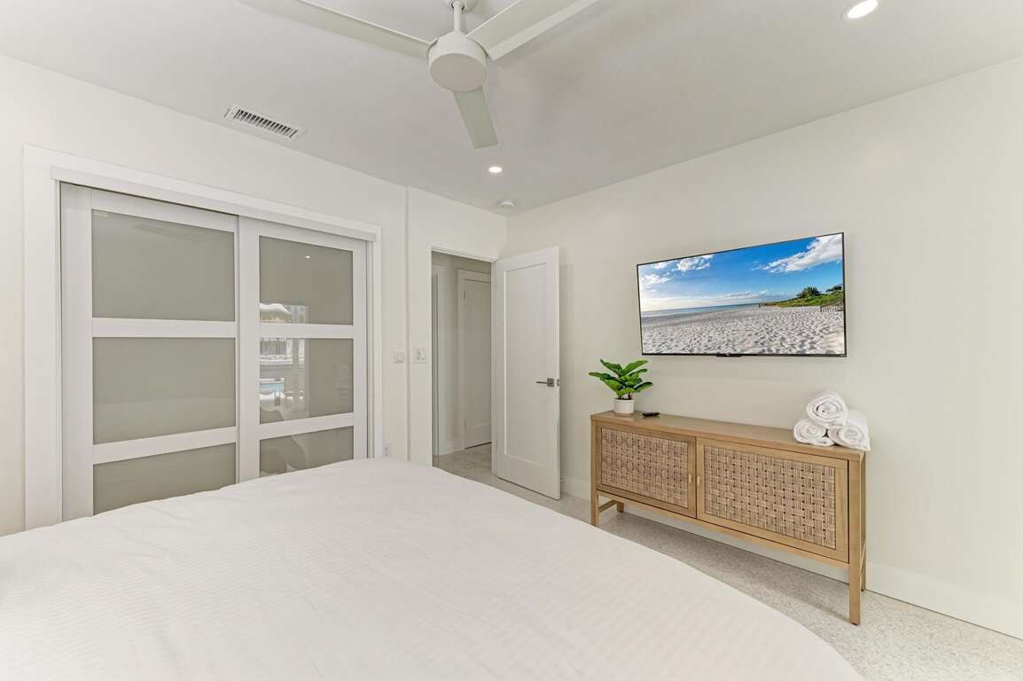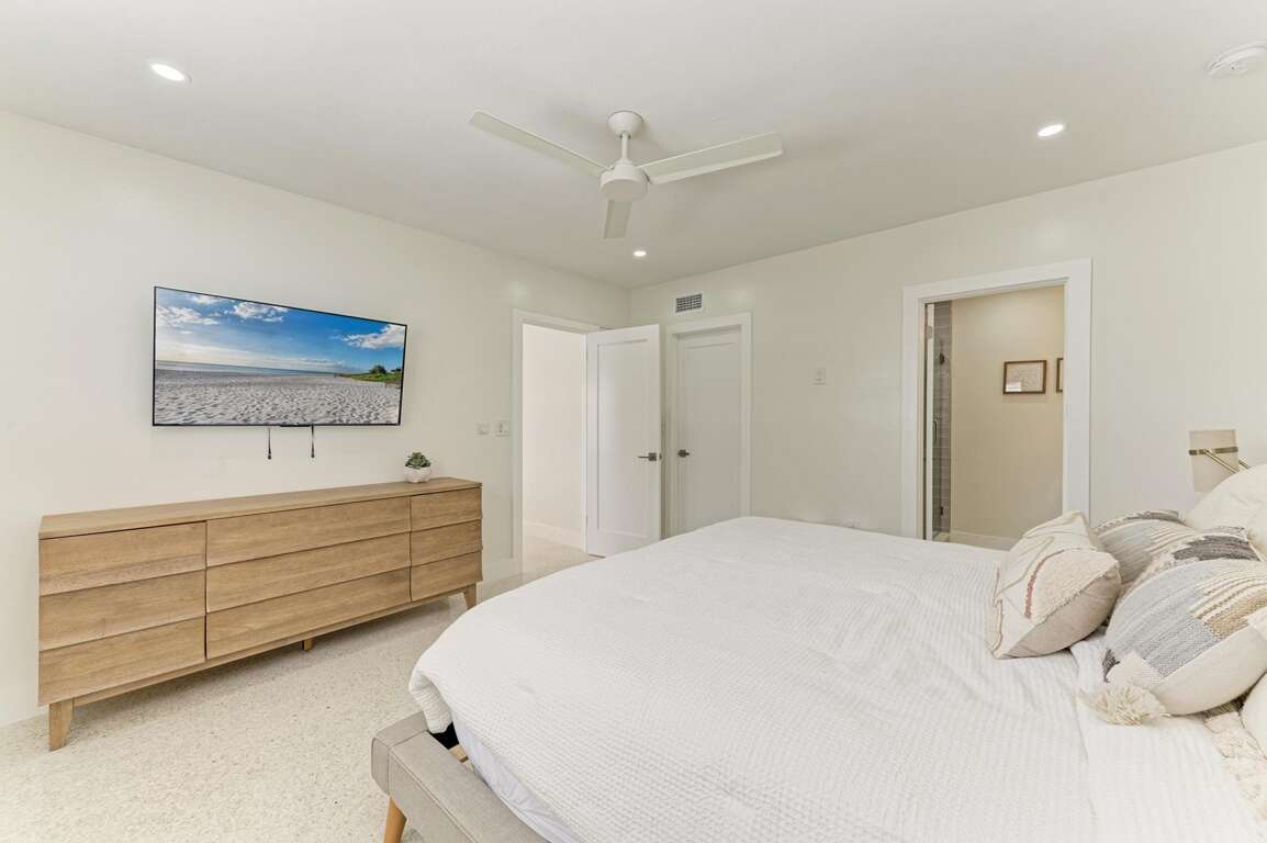 The master suite is a private retreat with a king bed and an ensuite bathroom featuring a sleek walk-in shower and dual vanities. Two additional bedrooms also feature king beds and share a hallway bathroom with a walk-in shower, offering comfort and convenience for family or guests. For added flexibility, the living room includes a twin pullout bed. Having all king beds makes "Casa Spoonbill" the perfect choice for couples, families, or groups seeking both comfort and privacy.