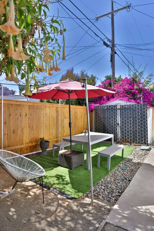Keep it simple at this peaceful and centrally-located home. Located in trendy South Park, minutes from downtown San Diego and the airport and the beaches. This listing is for the entire house which has a full 1-bedroom 1-bath apartment on the top floor, and a large studio apartment with kitchen and bathroom on the 1st floor. Lovely and lush courtyard with jacuzzi, BBQ and outdoor dining area. Laundry room with washer + dryer. Free EV charging for electric cars!