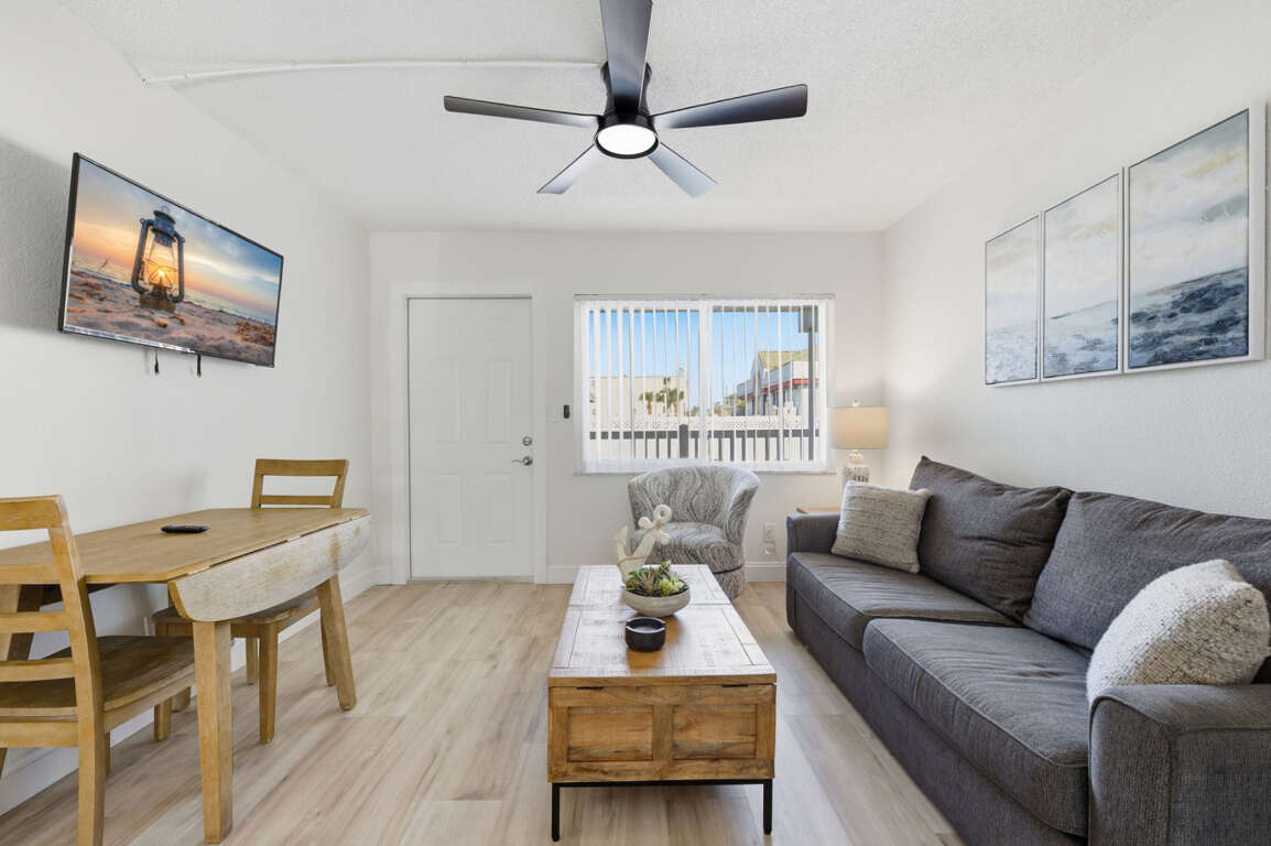Nice and nautical! One bedroom with brand new flooring, King size bed and sleeper sofa. Located on the first floor. Beautiful tile shower in the bathroom. You will find all the comforts you need to make your vacation unforgettable. The condo is located just steps from the pool, right across the street to the Public beach access, and within walking distance of a variety local restaurants and shops. The large heated pool is enclosed from the street by privacy fencing. Lounge chairs are available for tanning, and there is a tiki-hut for shade. You can use the Shuffleboard and BBQ Grill on-site. There is also a coin-operated laundromat. Please note that this unit can only be parked in one vehicle. Additional parking is available in the area. For more information, please contact us. Madeira Beach is just west of St. Petersburg. It has 2.5 miles of beautiful beaches and sparkling Gulf of Mexico water. Legend has it that John LeVique, a pirate, was the first European to settle Madeira Beach. It is most well-known for its 1,100-foot boardwalk that runs along the Intracoastal, John's Pass Village Boardwalk. Johnas Pass is home to a variety of shops and restaurants set in an old-style fishing village. You can watch pelicans diving for fish, see dolphins play, shop until you're satisfied, or just relax and enjoy the delicious food and drink. You can fish, but you can also rent a boat, go on a pirate cruise, or take a sunset dolphin cruise. There are many restaurants, bars, shops and public beaches within the city limits. Madeira Beach offers endless opportunities for memories and activities!